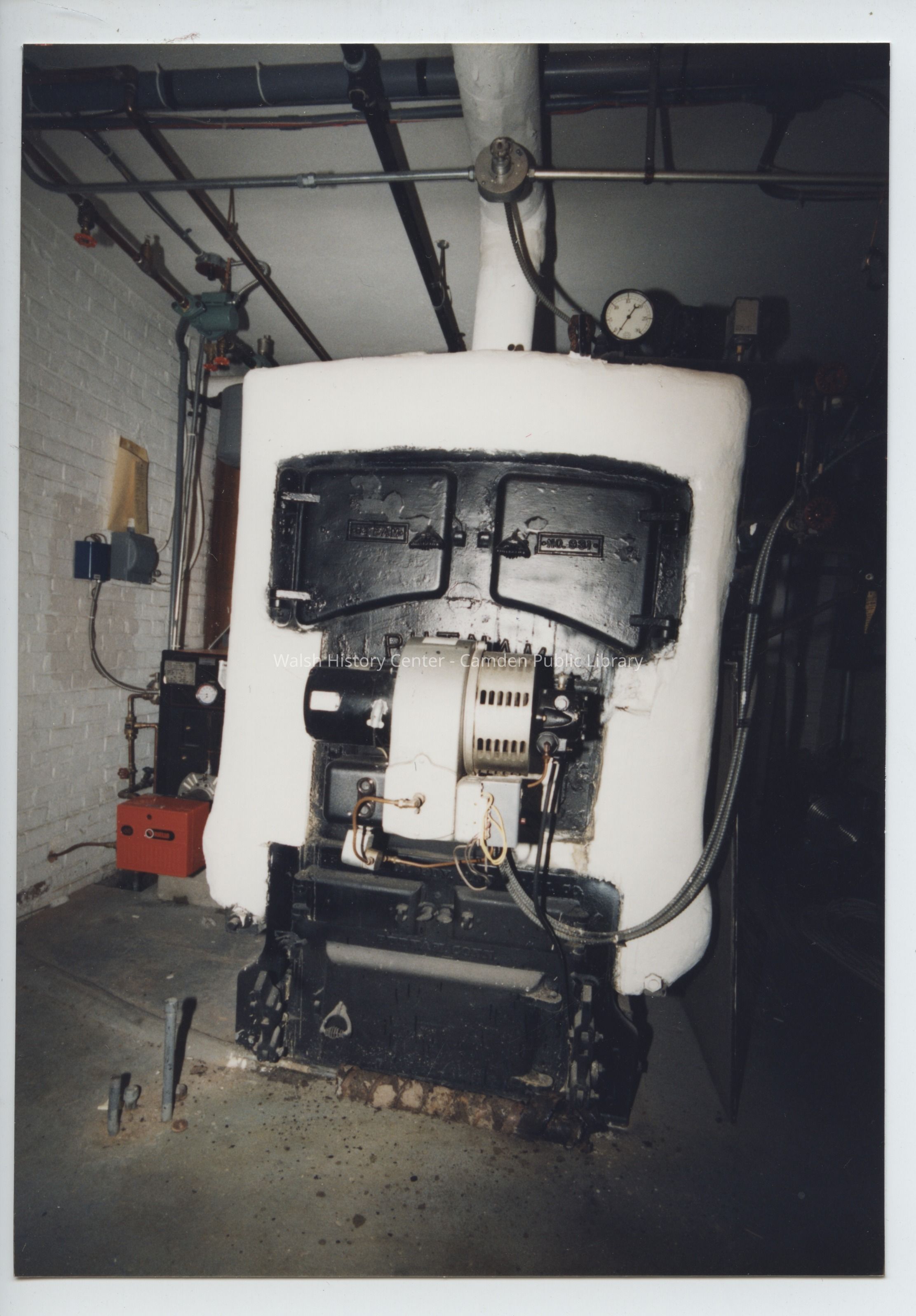 Photographs show the back entry to the Camden Public Library, the maintenance and supply rooms, and the furance room prior to the Centential Wing expansion c.1994/1995.Collection