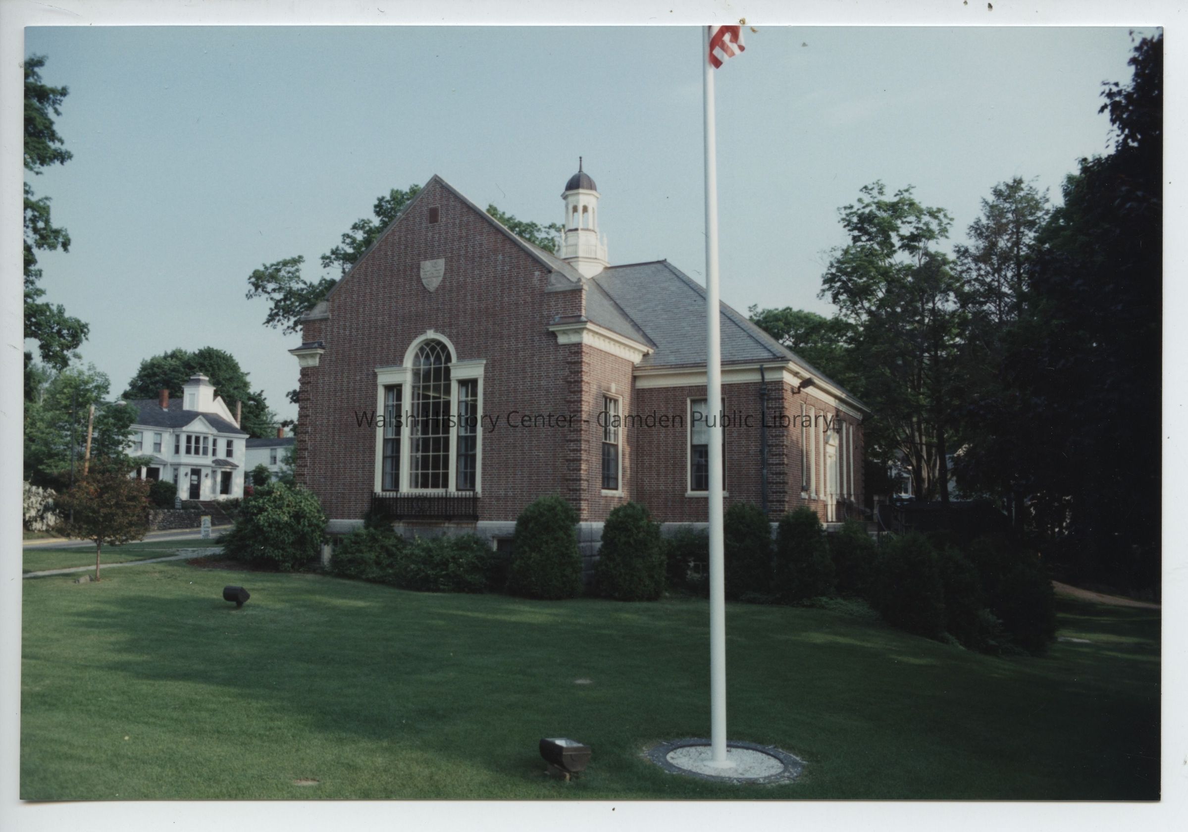 Photograph shows the south lawn of the Camden Public Library prior to the construction of the Centennial Wing c.1994/1995.Collection