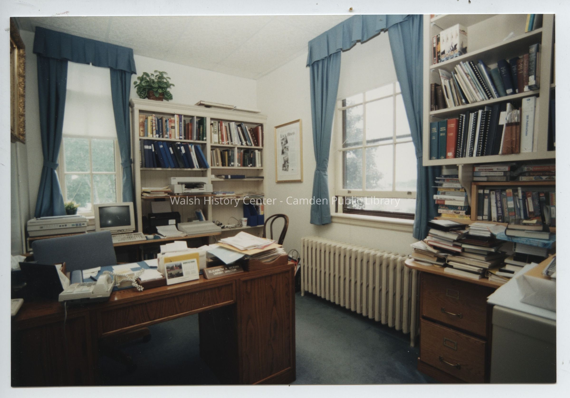 Photograph shows the library director's office prior to the construction of the Centennial Wing c.1994/1995.Collection