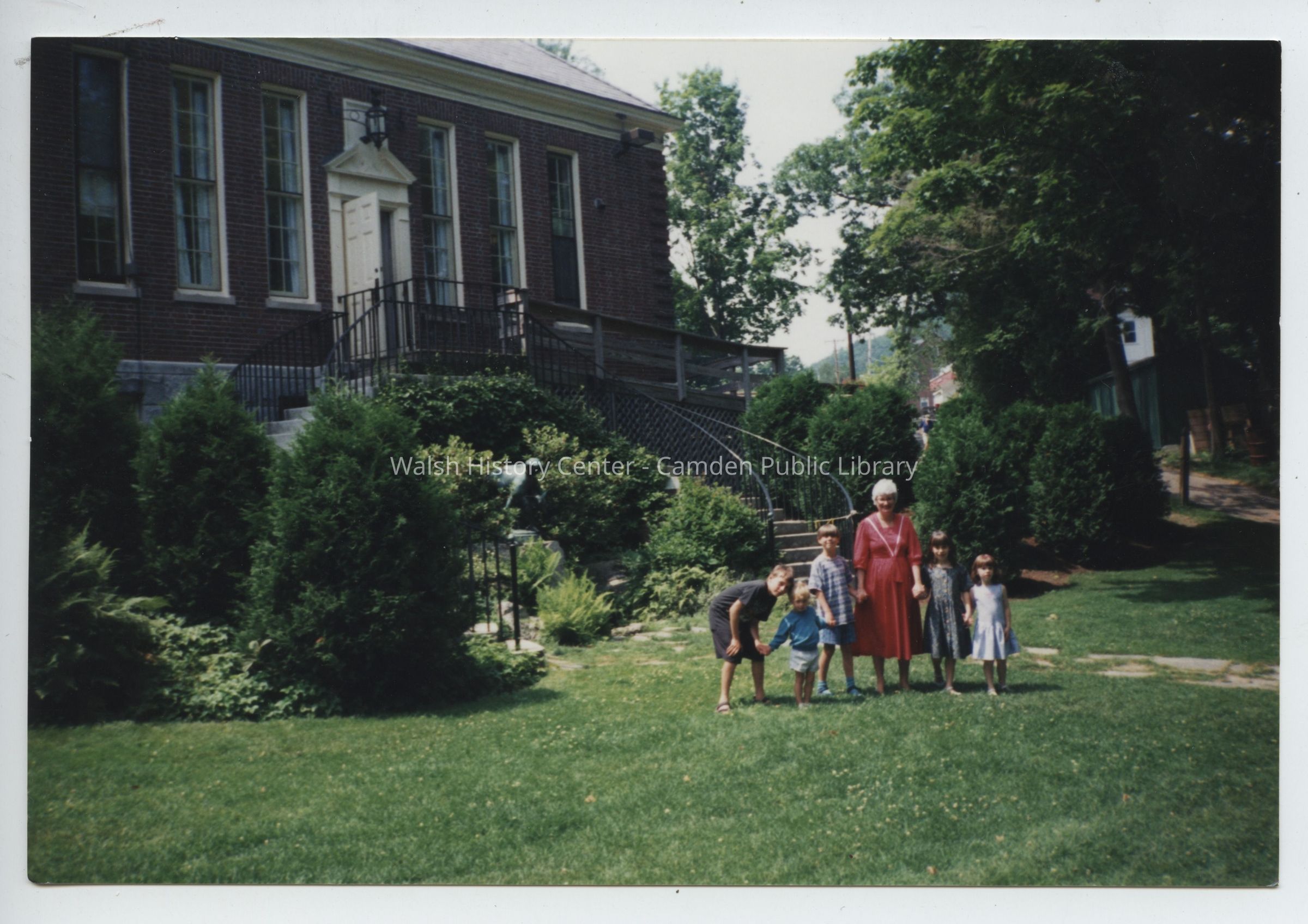 Photograph shows Camden Public Library director Elizabeth Moran with several children prior to the Centennial Wing expansion c.1994/1995.Collection