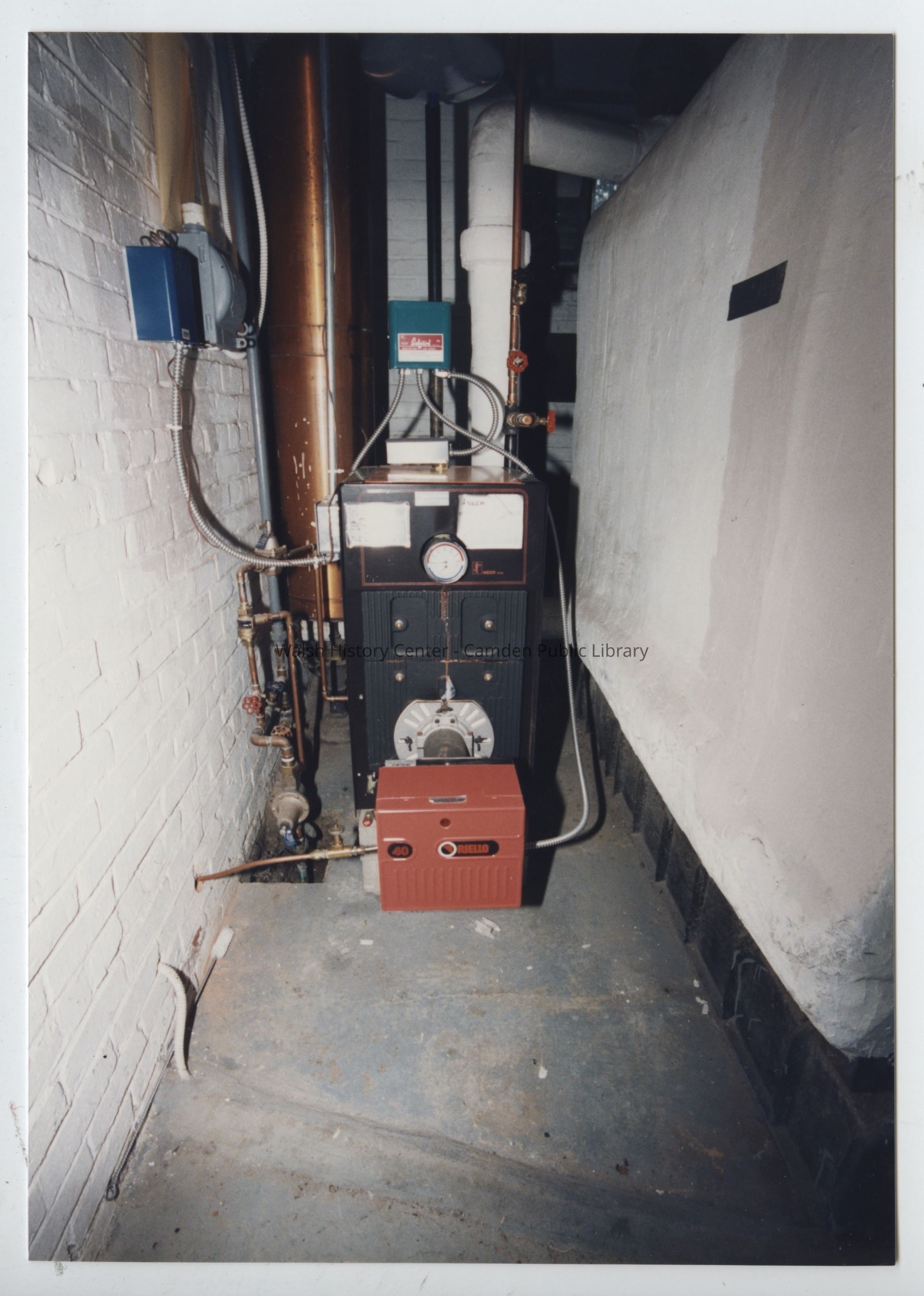Photographs show the back entry to the Camden Public Library, the maintenance and supply rooms, and the furance room prior to the Centential Wing expansion c.1994/1995.Collection