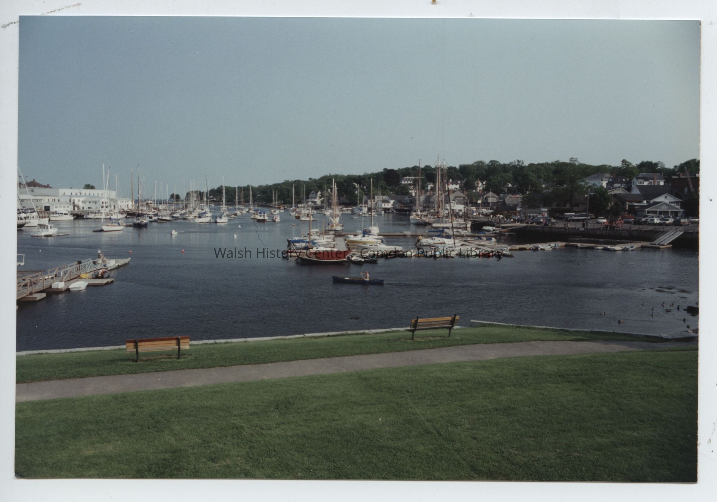 Photograph shows Camden Harbor Park across Atlantic Avenue from the Camden Public Library prior to the construction of the Centennial Wing c.1994/1995.Collection