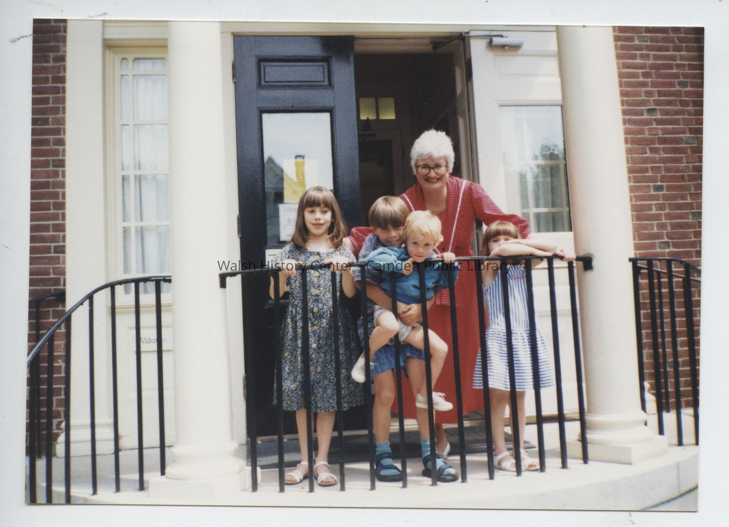 Photograph shows Camden Public Library director Elizabeth Moran with several children prior to the Centennial Wing expansion c.1994/1995.Collection
