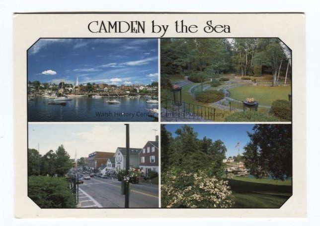Postcard of scenic shots of Camden, Maine. Photos by Marjorie Nietz.Collection