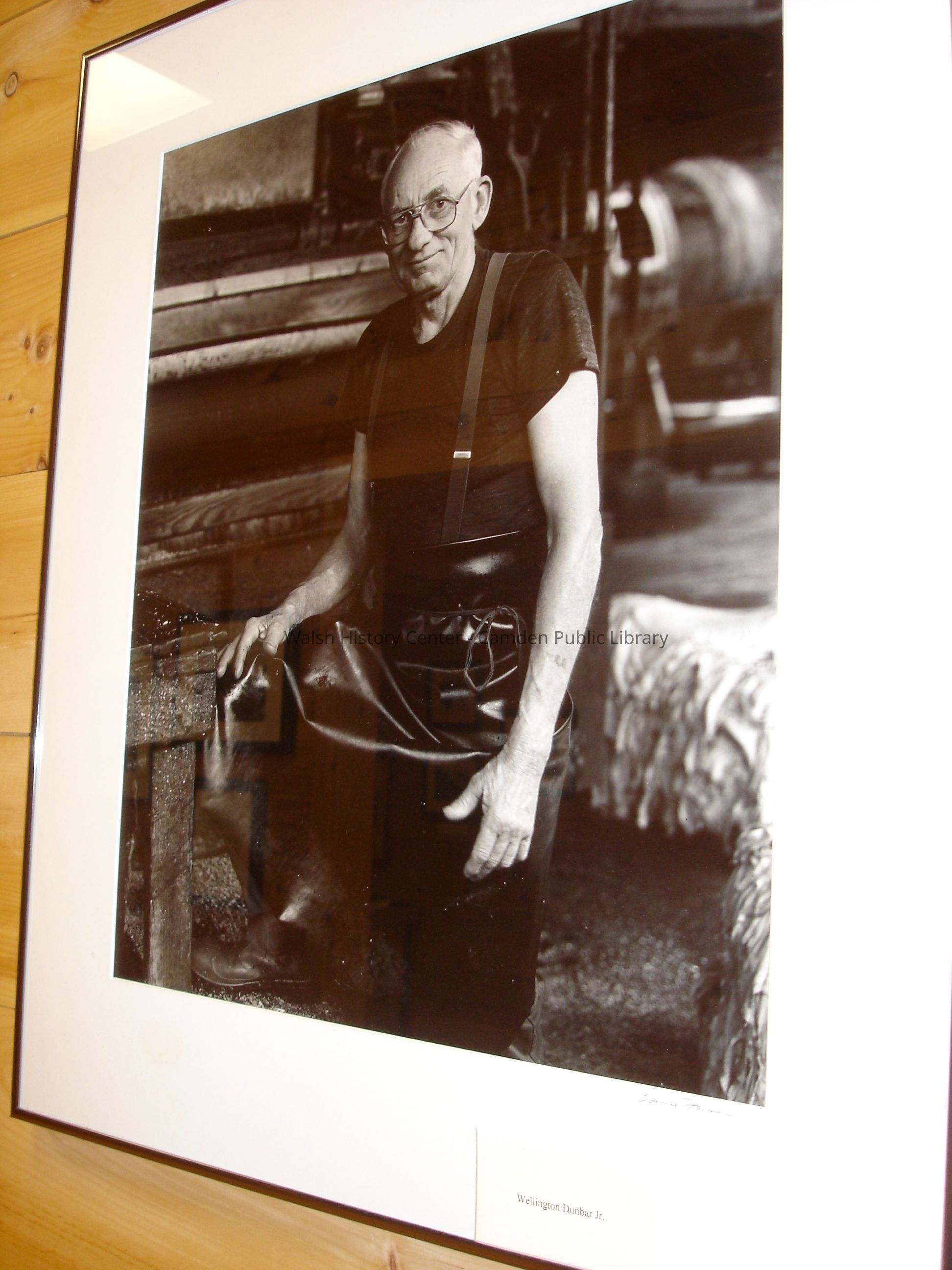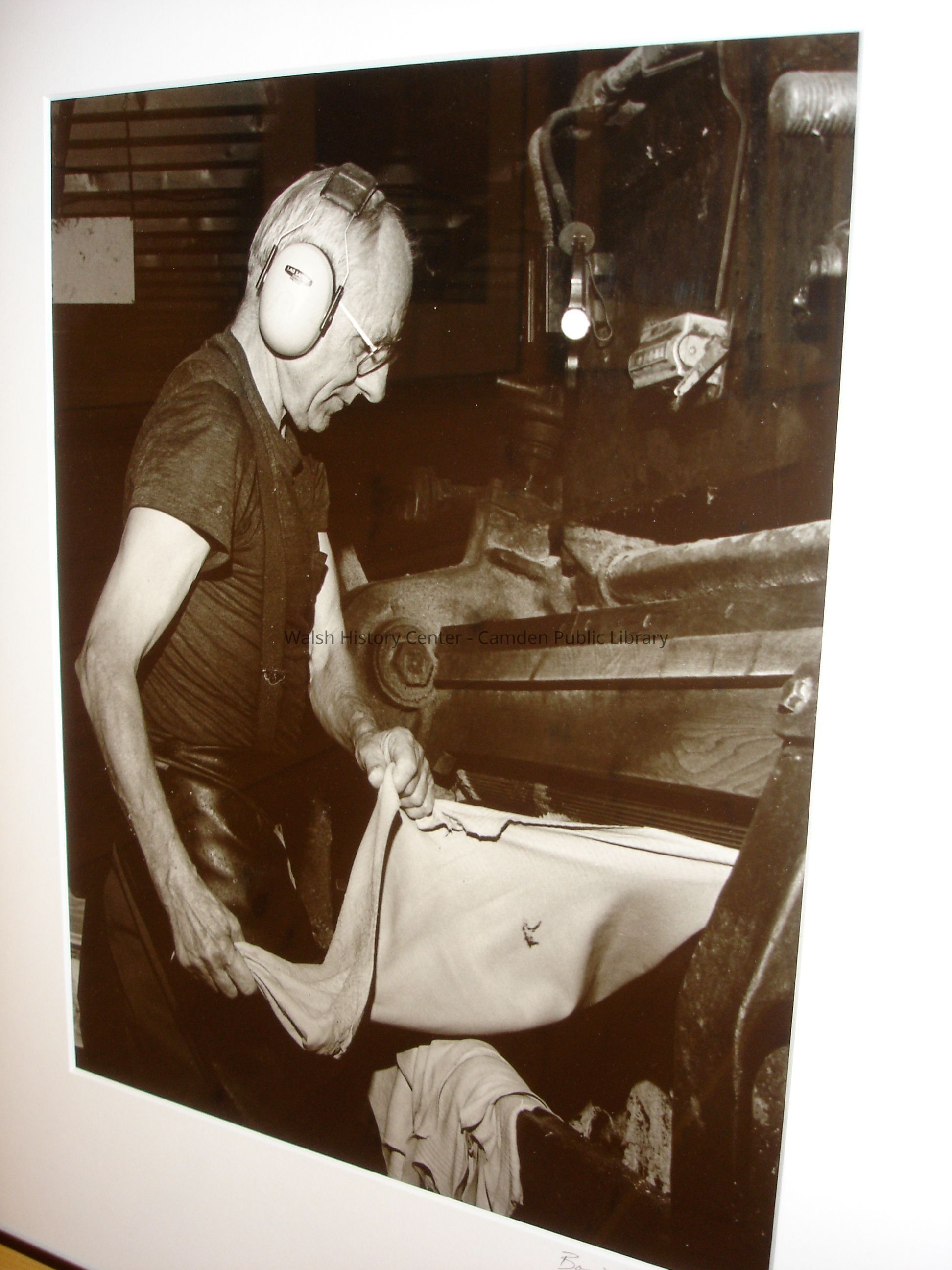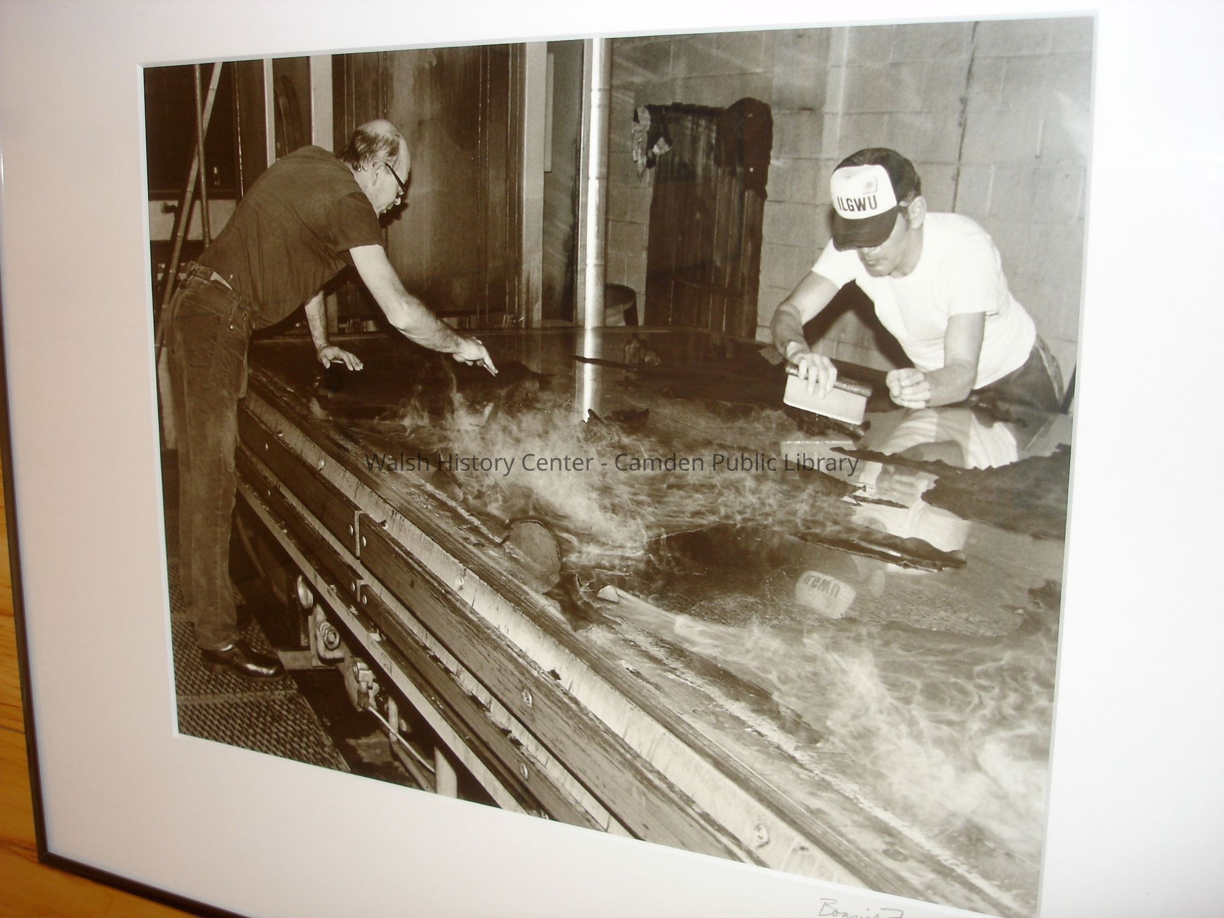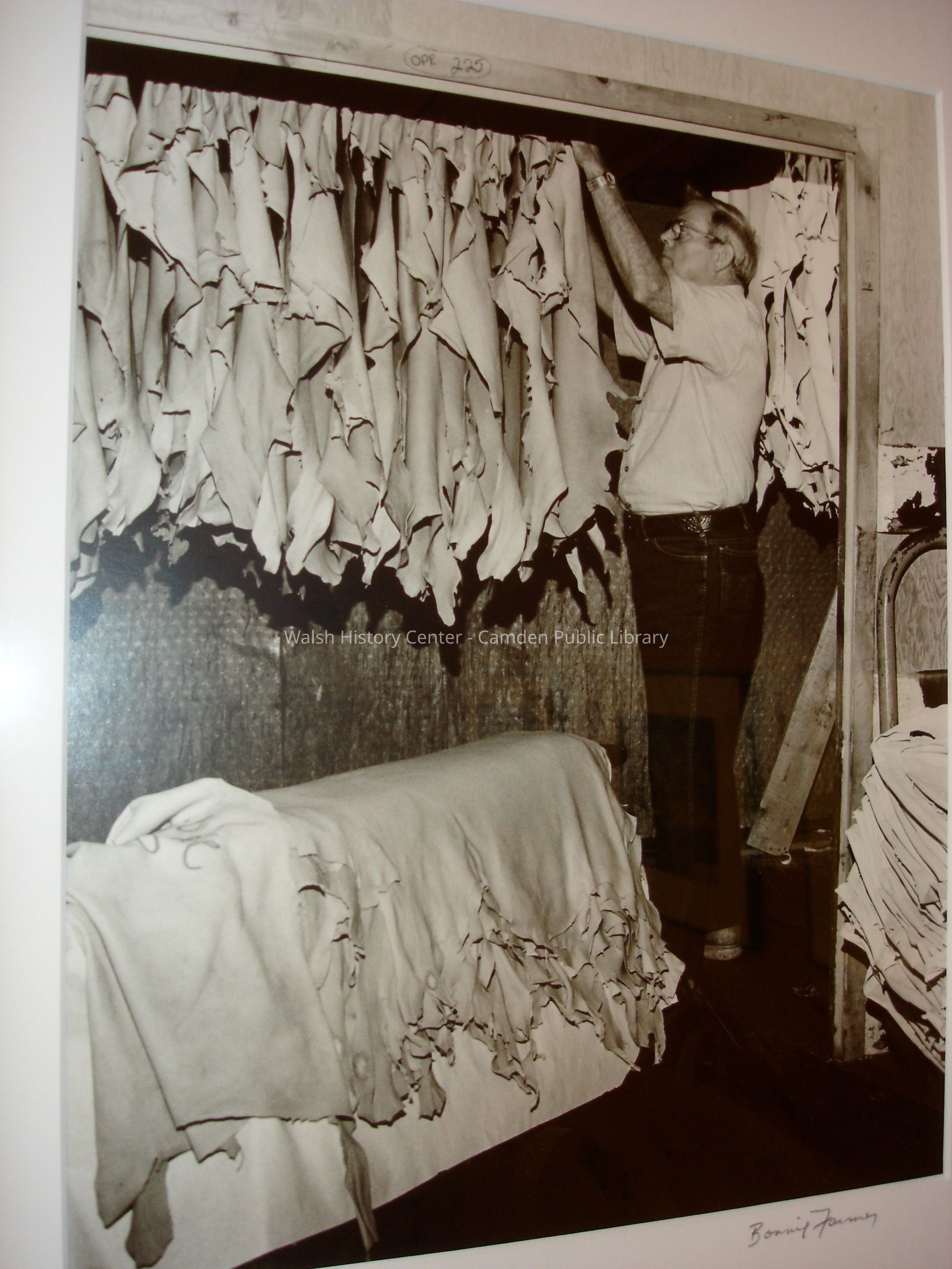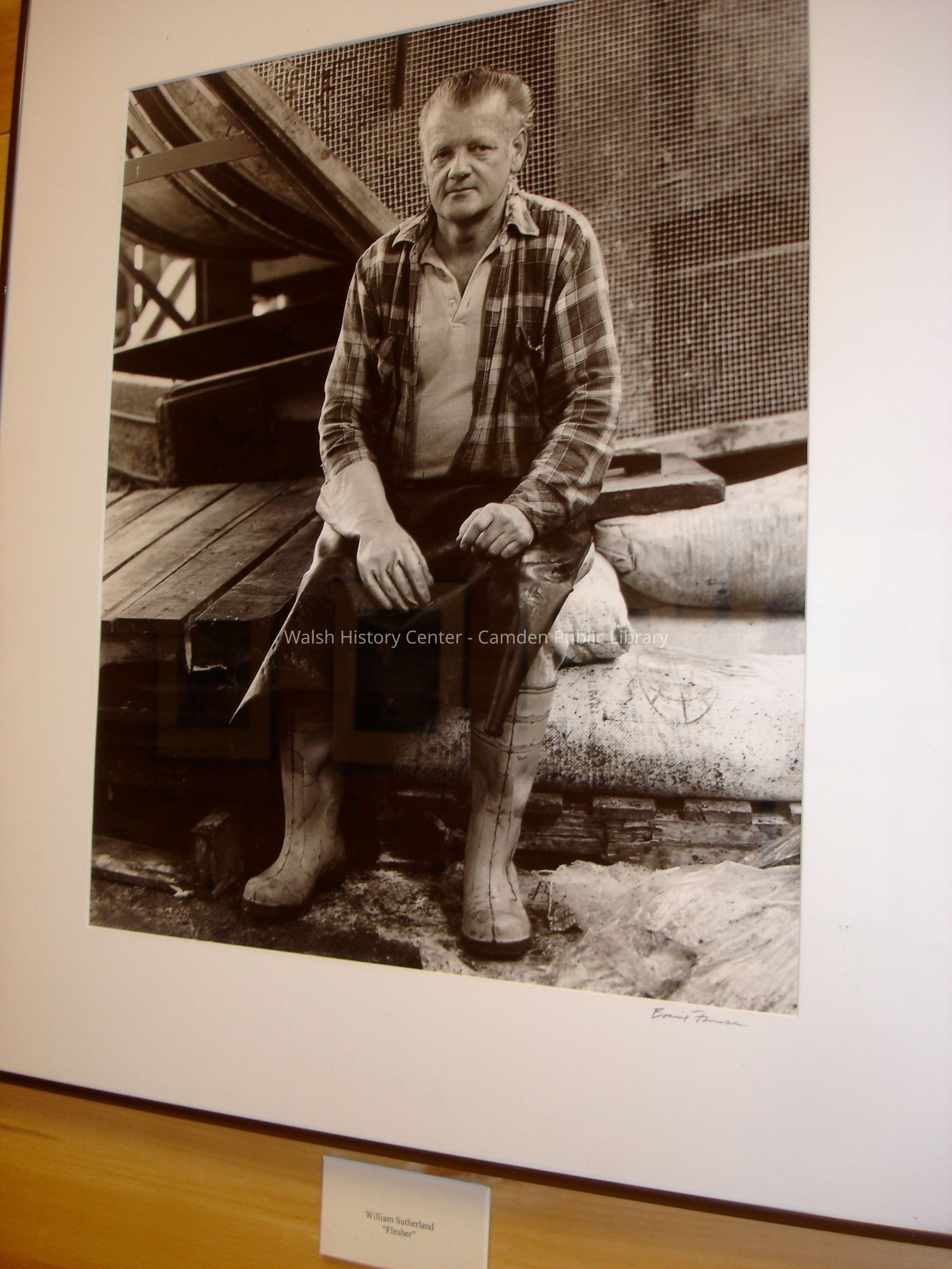 23 black and white framed photographs of the Camden Tanning Corporation interior and employees. The tannery was established in 1954 on outer Washington Street in the former Camden Woolen Company building. These images were taken just prior to the closing of the facility in 1999. The building has since been destroyed.Collection