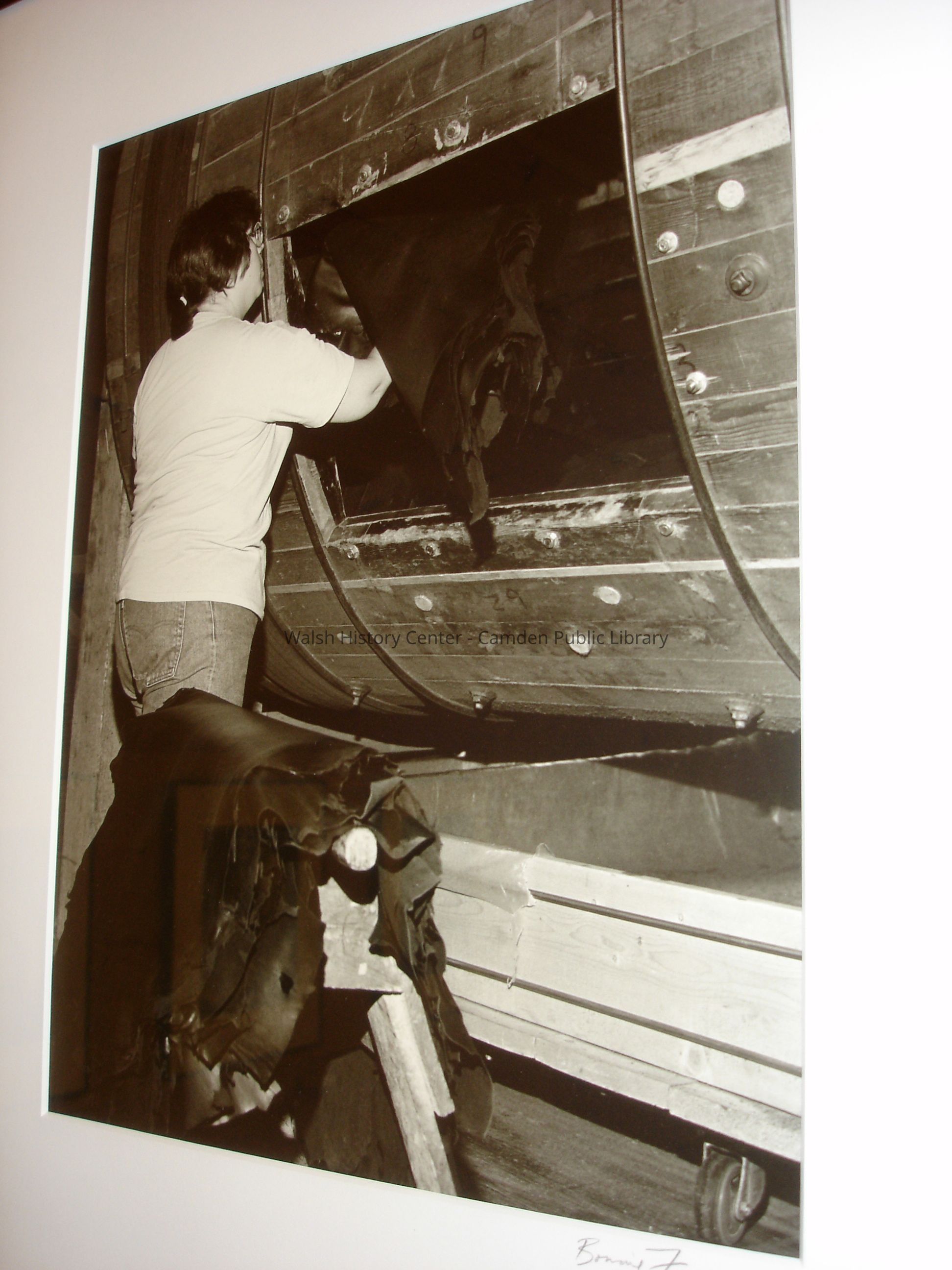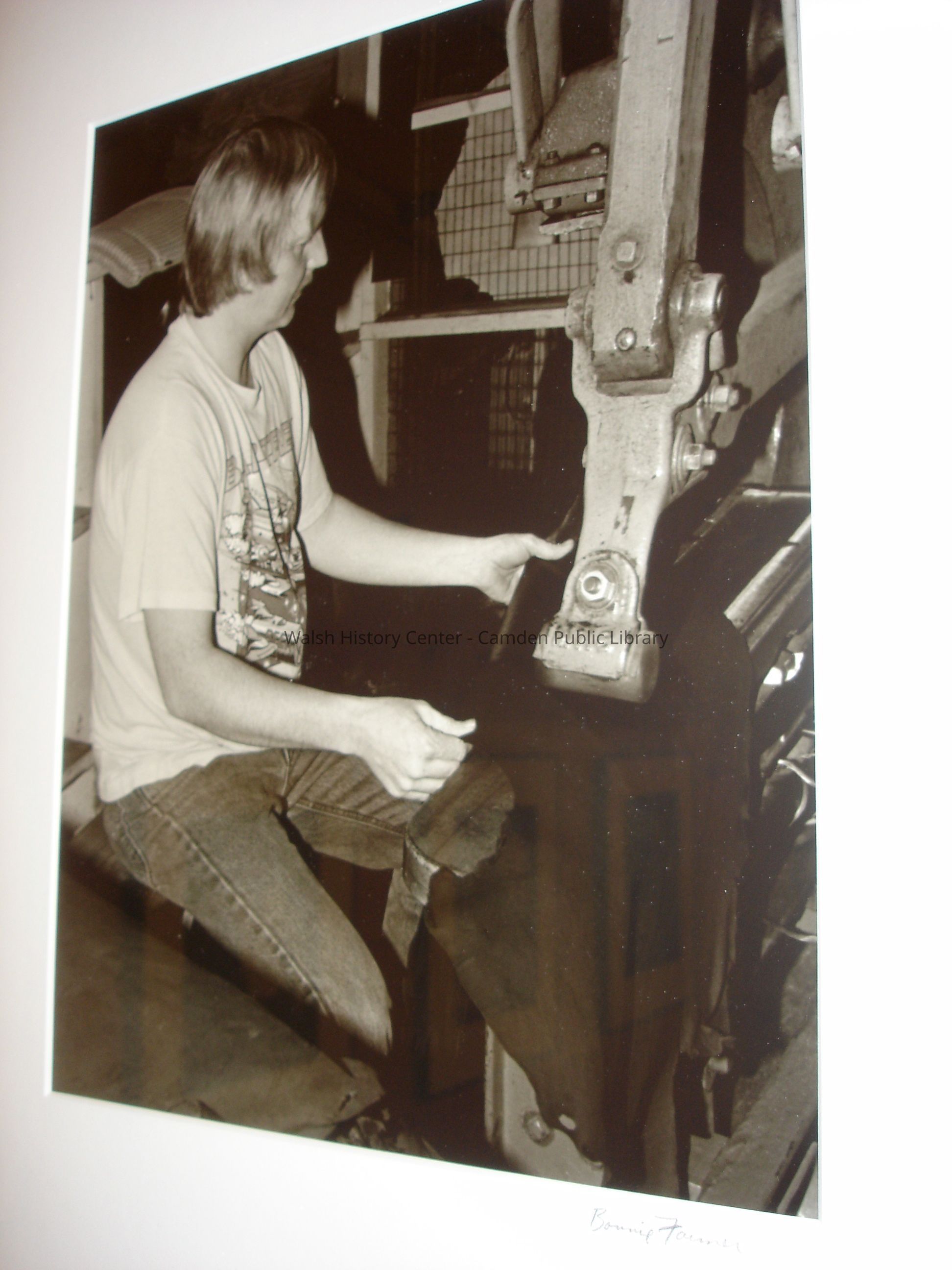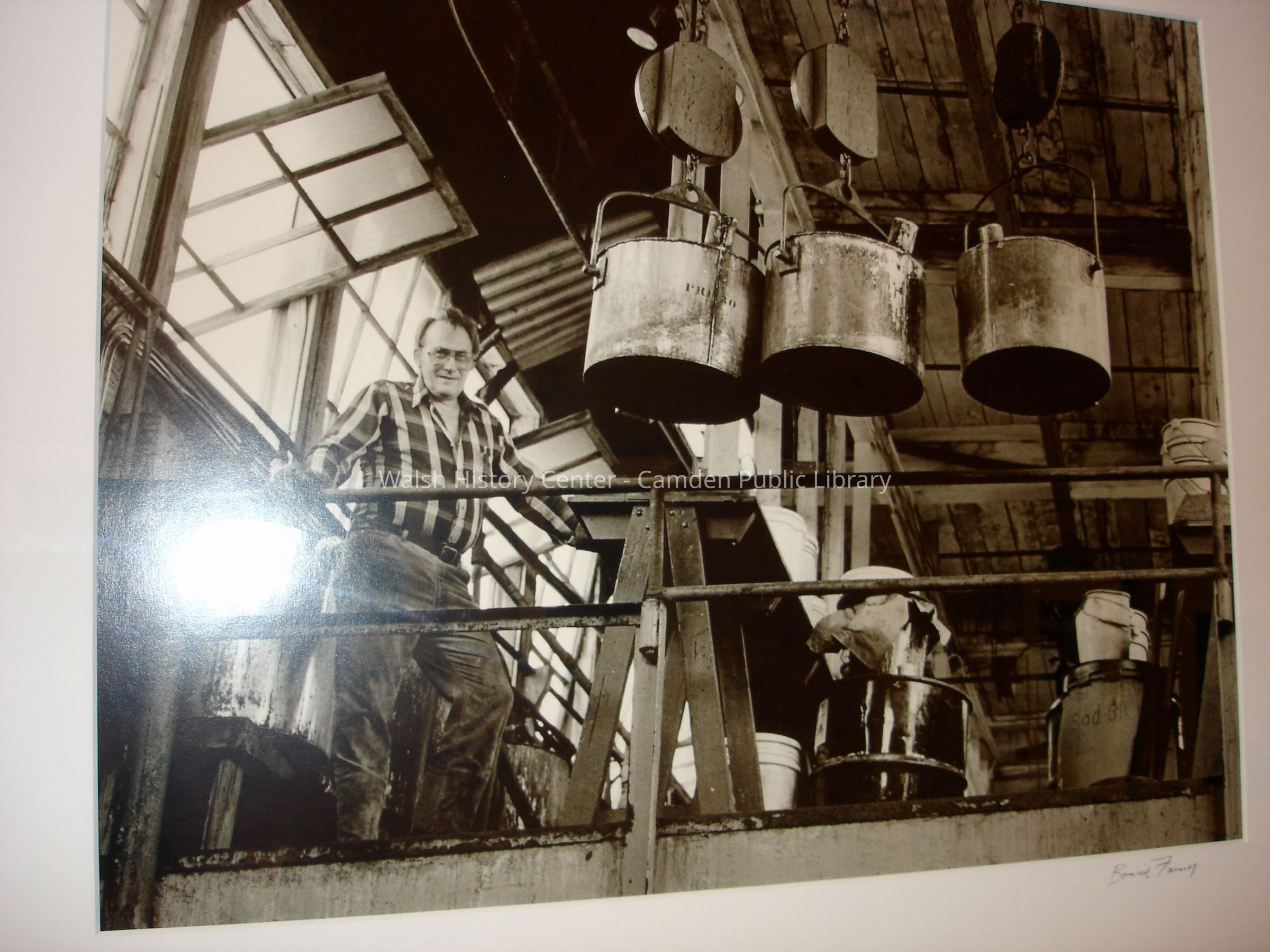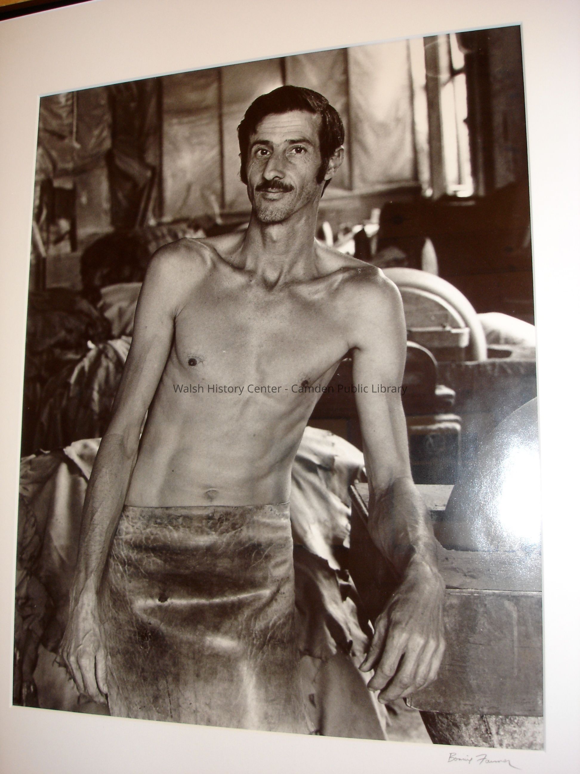 23 black and white framed photographs of the Camden Tanning Corporation interior and employees. The tannery was established in 1954 on outer Washington Street in the former Camden Woolen Company building. These images were taken just prior to the closing of the facility in 1999. The building has since been destroyed.Collection