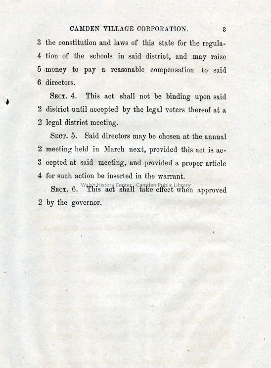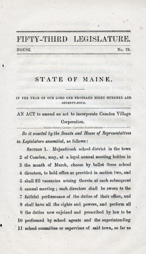 Fifty-third Legislature - State of Maine - An act to amend an act to incorporate Camden Village Corporation.