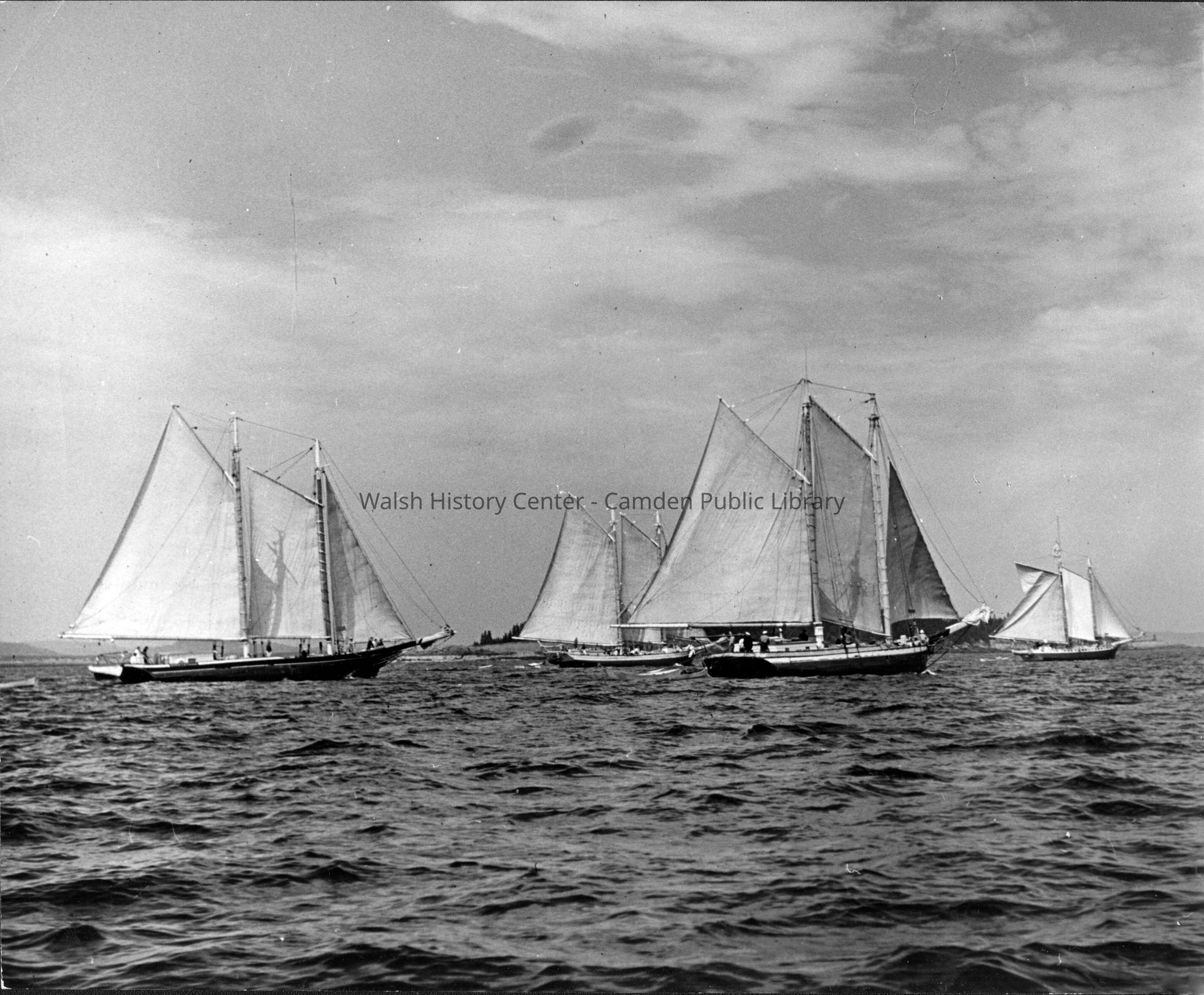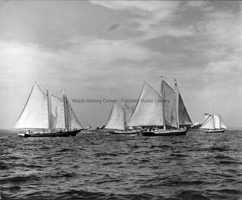Two b/w photos of schooners in Camden harbor, one of which is the "Mattie."Collection