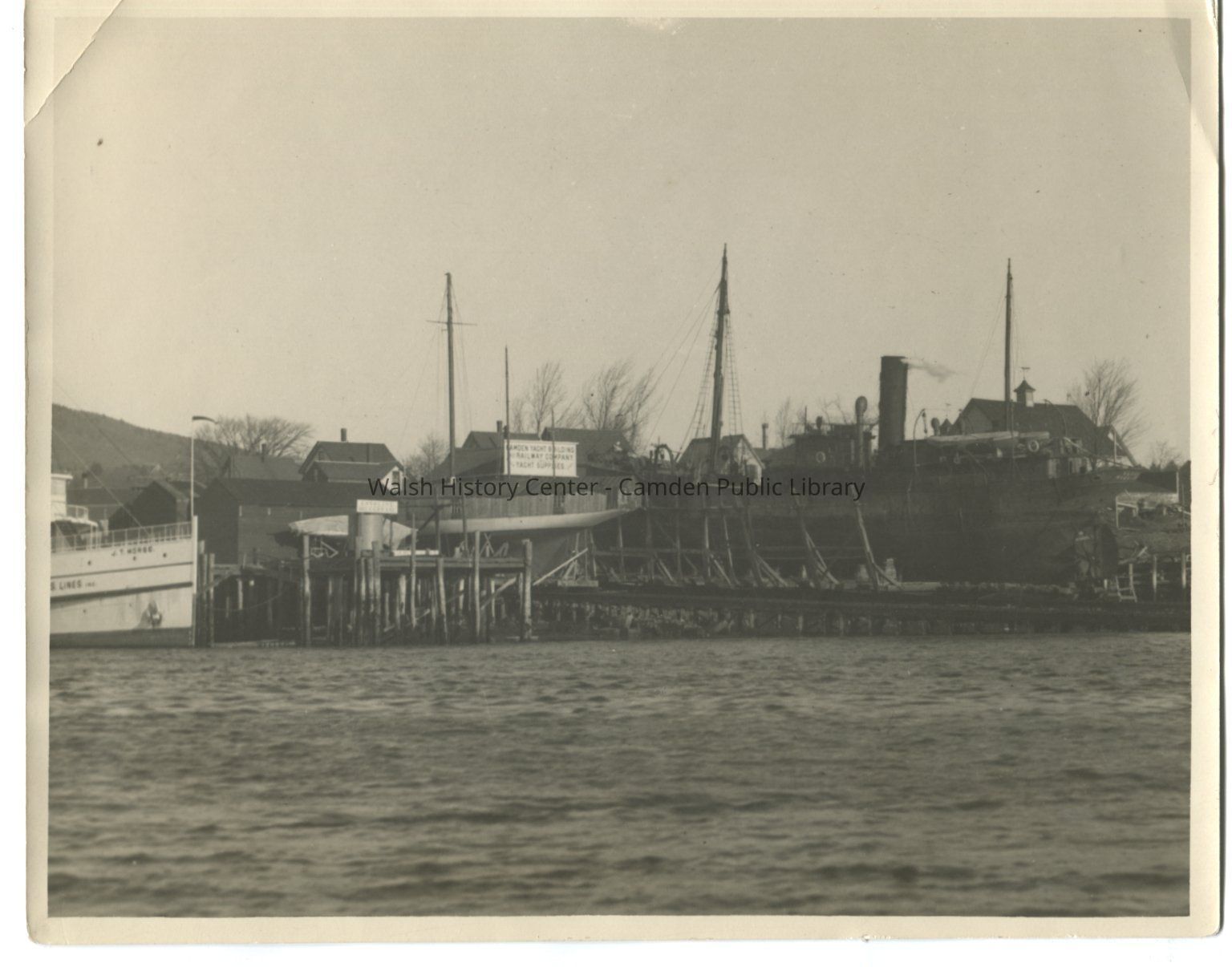 Photograph of the Camden Yacht Building & Railway Company with 2 vessels on the ways and the bow of the steamship "J.T. Morse" visible on the left.Collection