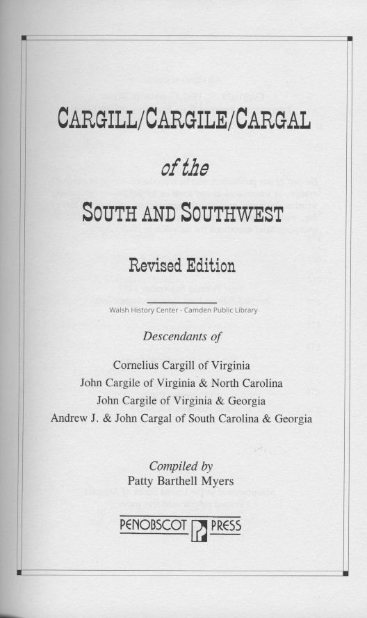 Descendants of immigrants with surnames Cargill, Cargile or Cargal.Collection
