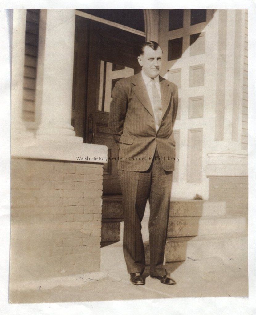 Photo of CHS Principal, Carleton P. Wood, outside the school steps circa 1942.Collection