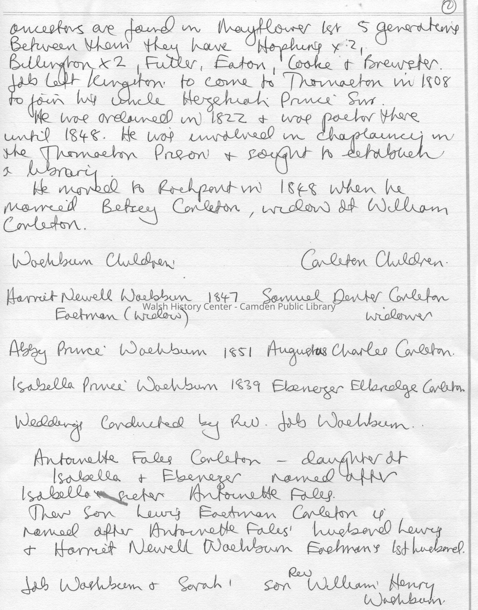 Carlton / Haven/ Fales/ Washburn CollectionCataloged By