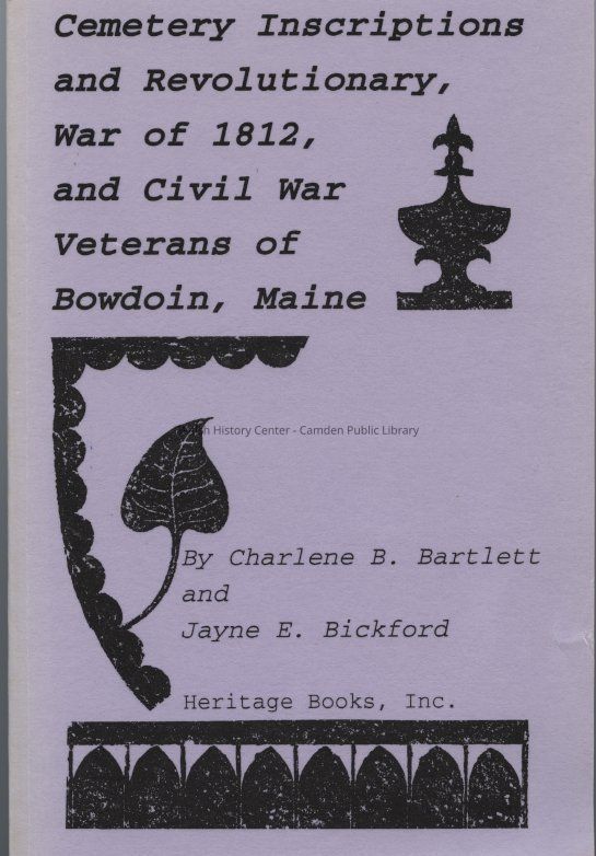 Cemetery inscriptions for Bowdoin, Maine that covers the veterans of the Revolutionary War, War of 1812, and Civil War.