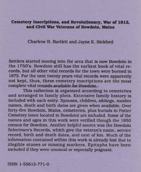 Bowdoin, Maine, War of 1812, GenealogyOther Names and Numbers