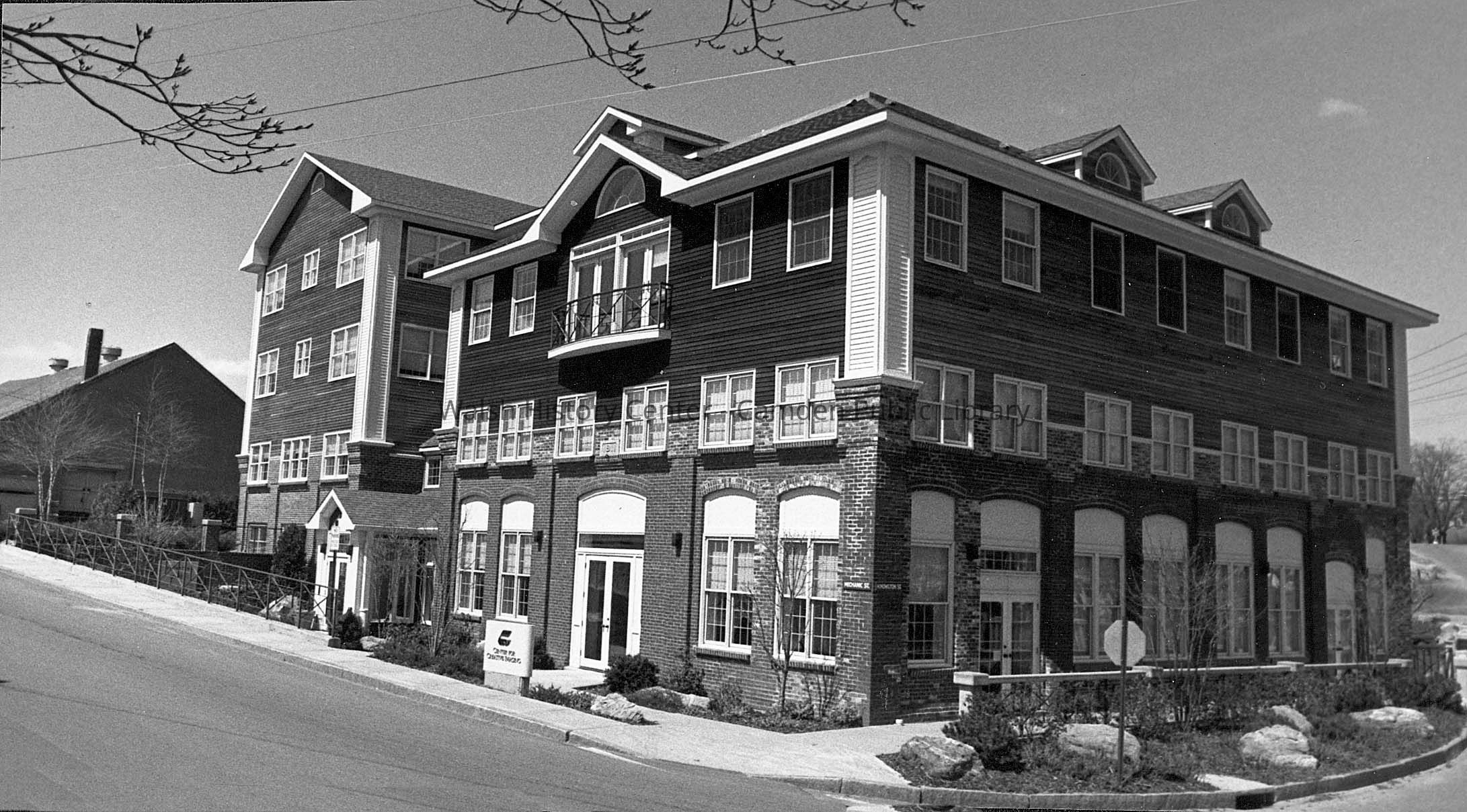 Center for Creative Imaging on Mechanic Street in Camden as it appeared in the early 1990's. Formerly the site of Knowlton Brothers Foundry, Eastman Kodak Company opened the center in 1991 to showcase photographic technology. The center was sold to Brace Management Group in 1993 before closing in 1994. Later the building was purchased by MBNA.Collection