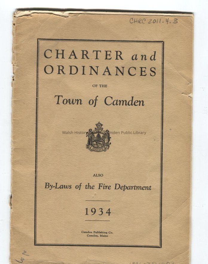 Charter and ordinances of the Town of Camden, including the by-laws of the Atlantic Engine Company No. 2 and the charter to provide a Town Manager form of government for the town. Ordinances adopted 27 April 1934. A photocopy of the charter is also included.Collection