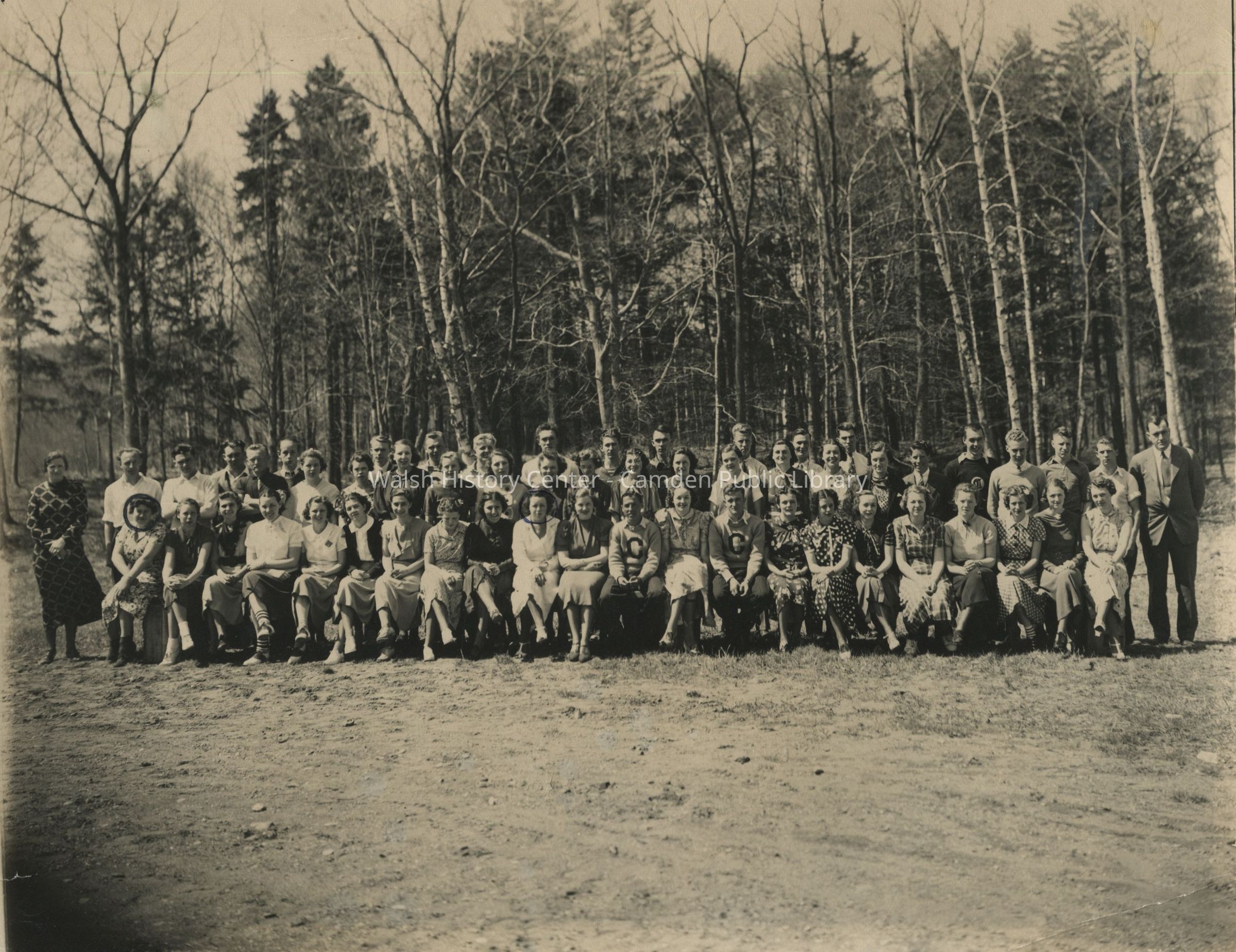 Photograph of the Camden High School Class of 1937. All students identified on verso with additional information on marriages and death dates. Information written by donor.Collection
