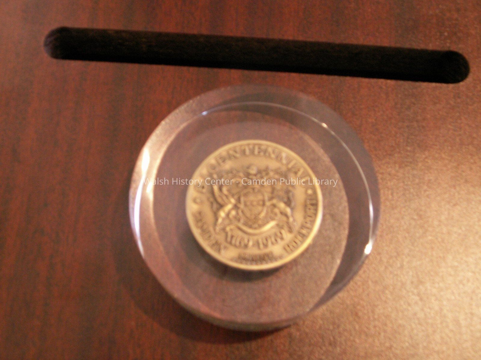 Camden - Rockport bicentennial coin embedded in clear plastic disc.