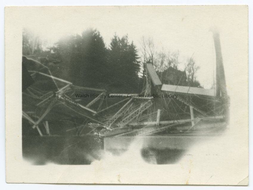 Collapse of the bridge across the Goose River in Rockport, Maine in 1946 after being hit by a truck.Collection