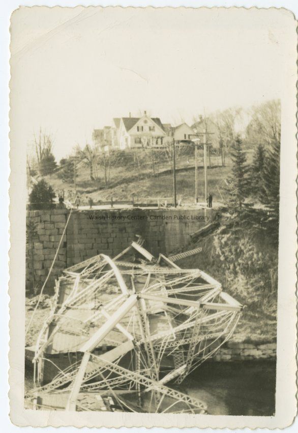 Collapse of the bridge across the Goose River in Rockport, Maine in 1946 after being hit by a truck.Collection