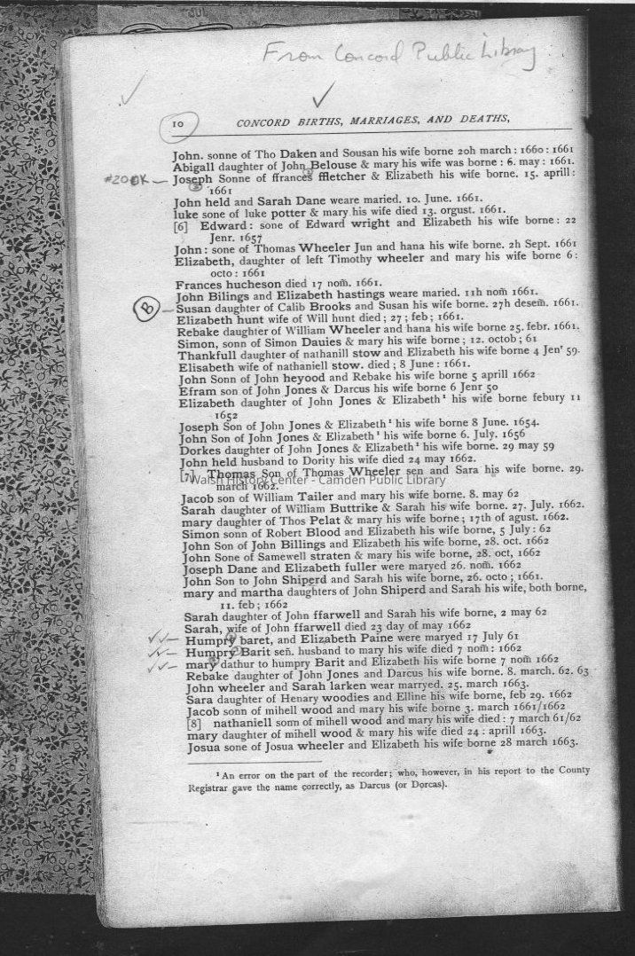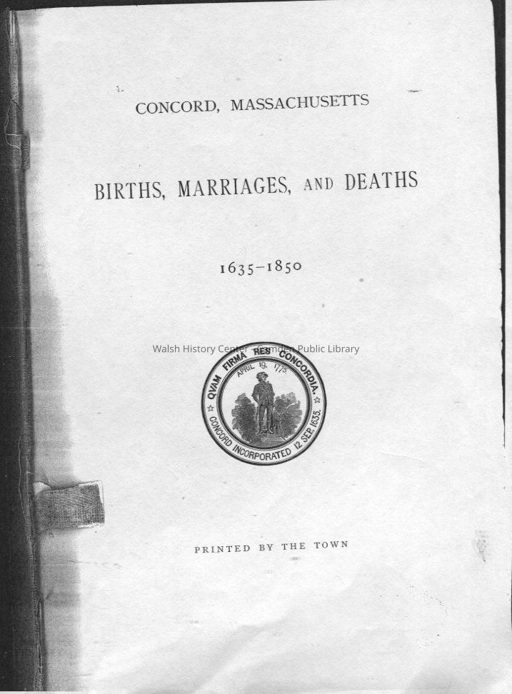 Concord, Massachusetts, Barrett family, Vital Records, GenealogyOther Names and Numbers