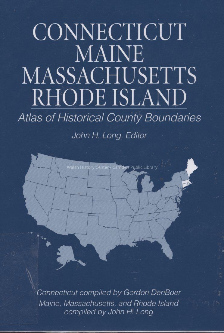 Consolidated atlas encompassing historical territories in maps and chronological tables. Introduction includes how the county system was transplanted to North America by early colonists from England, a history of the atlas, sources, base map useage, date standards, and abbreviations. In the front of each state section, there is a listing of county creations including county name, source, date of authorization and creation effective; a consolidated chronology of state and county boundaries given by date and description; county maps and areas (including names of towns, rivers, streams, falls, and mountains. Details on maps also include map number, date and event (creation, certification, deletion) and area square miles. Layout of the counties recorded during Census conclude each state segment.
