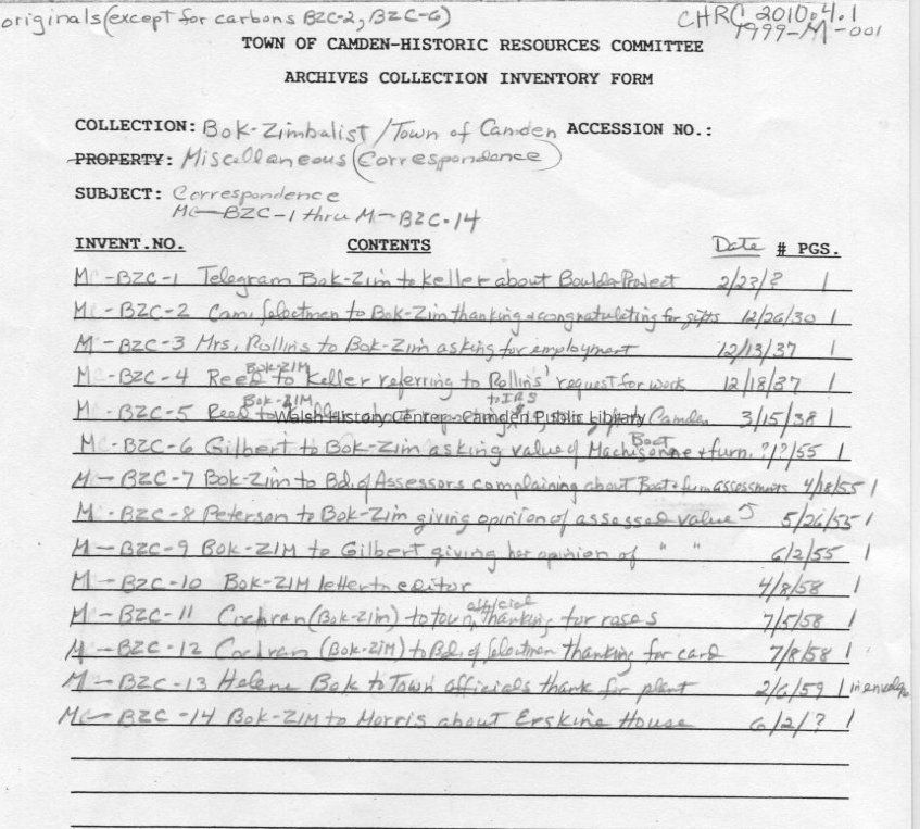 File of 14 letters of correspondence between Mary Louise Curtis Bok and the Town of Camden.Collection
