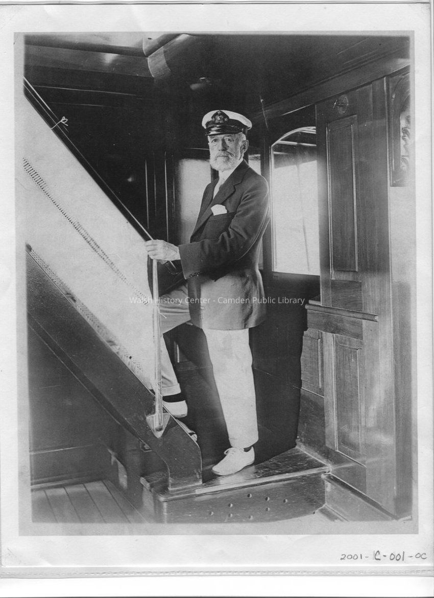 Laser b/w print of Cyrus H.K. Curtis aboard his yacht "Lyndonia". Original remains in the collection of Stormy Bok, widow of Curtis' grandson Cary Bok.Collection