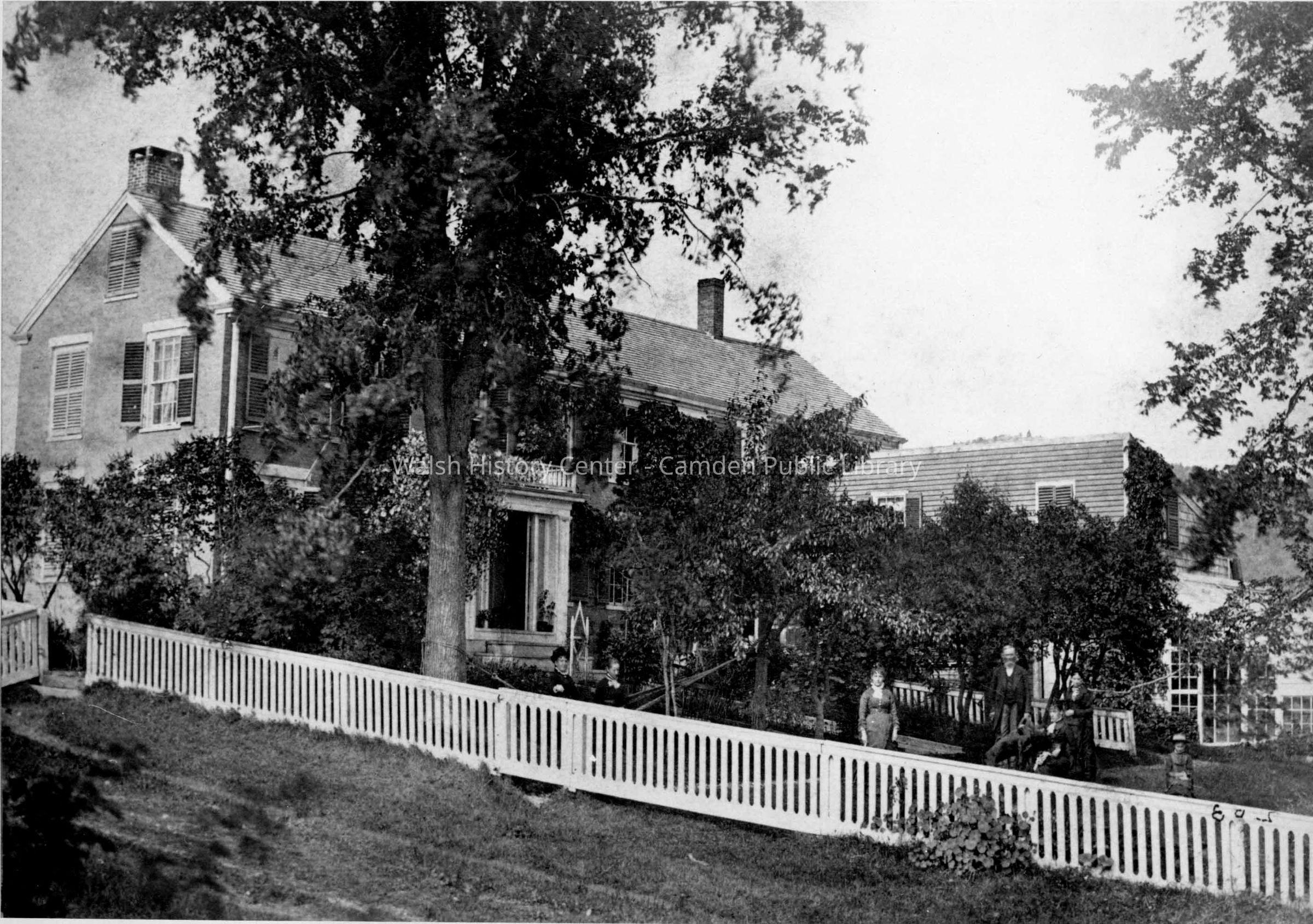 The David Howe House (later, the Queen house) with people in front yard - Ducktrap, Maine. David's son William Howe later owned this house.