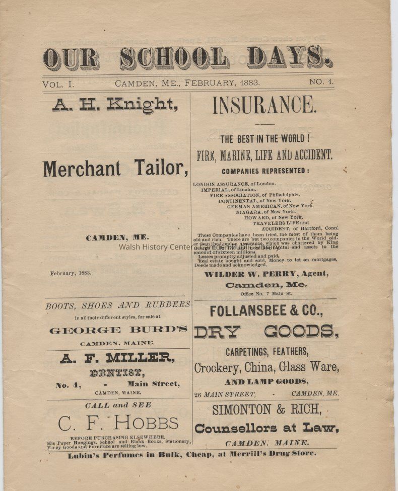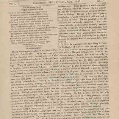Vol. 1, No. 1 Camden, ME February 1883Description