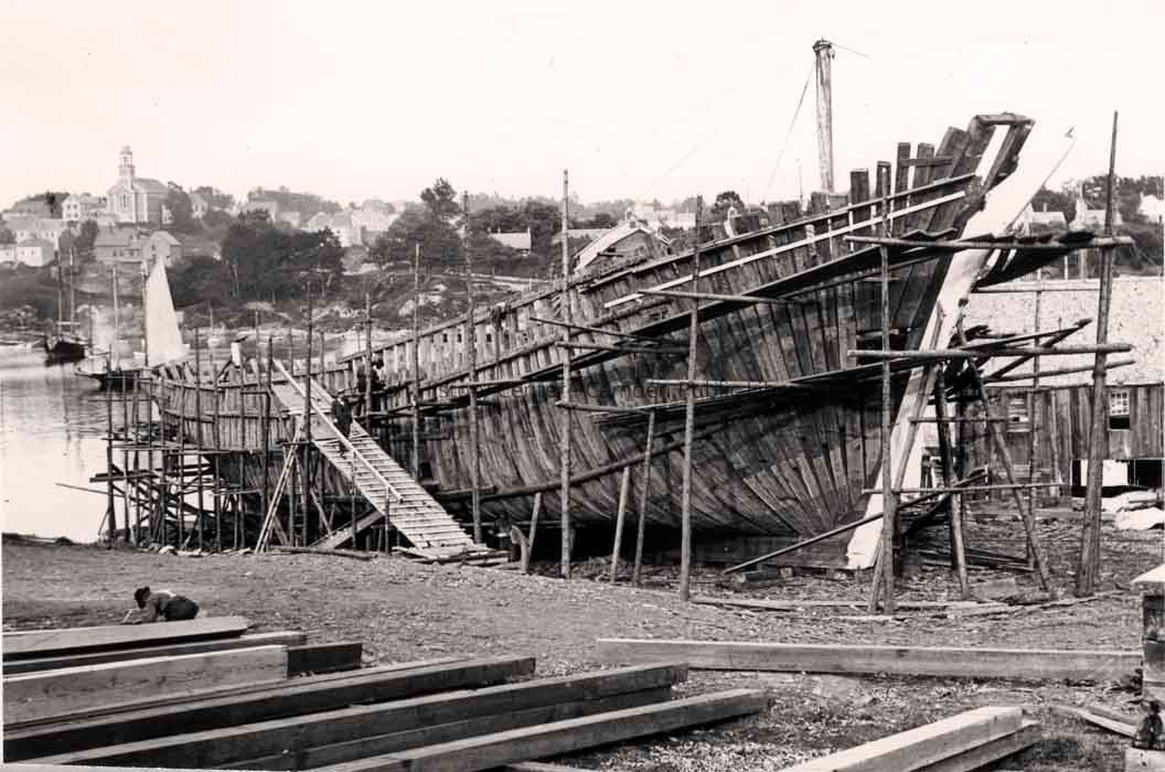 Unidentified schooner, probably the "Edgar W. Murdock" under construction in Rockport, ME