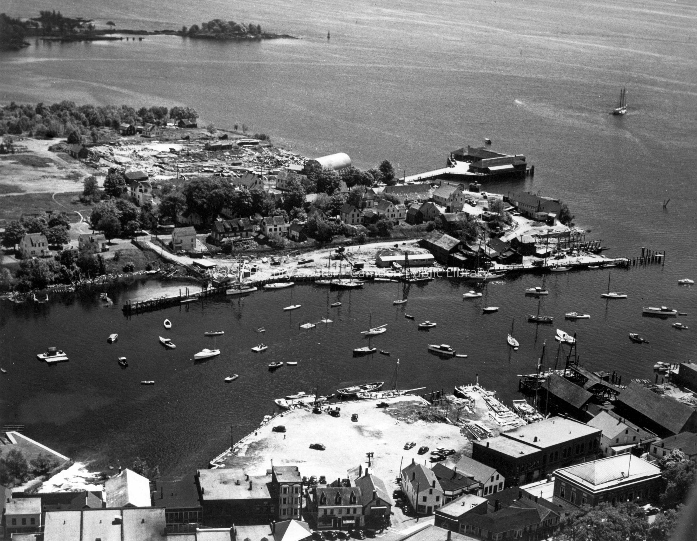 Original black and white aerial photograph of Camden Harbor in 1946.Collection