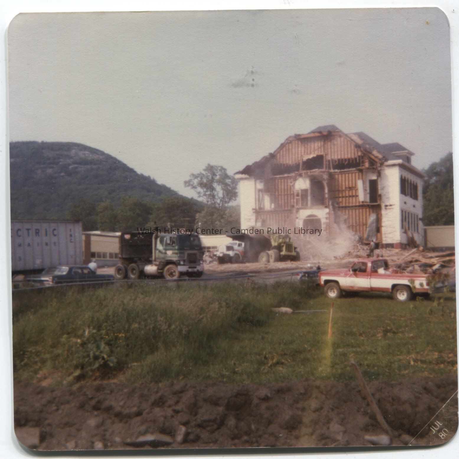 Series of photographs of the demoliltion of Camden High School on Knowlton Street. Built prior to 1905, the school had become unsafe and was torn down in July 1980.Collection