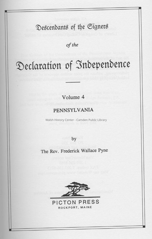 Descendants of the Signers of the Declaration of Independence Volume IV PennsylvaniaEntry/Object ID