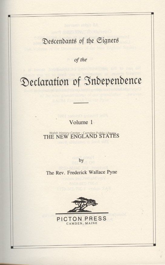 Descendants of the Signers of the Declaration of Independence. Vol I: The New England StatesEntry/Object ID