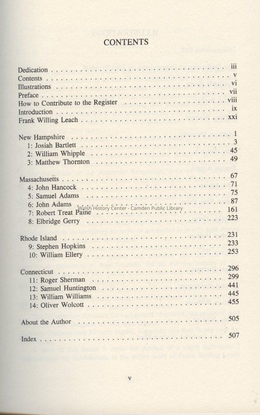 A detailed genealogical history of the signers of the Declaration of Independence. Includes known vital records and references as to their locations. This is Volume I of VII and covers the New England states which in 1776 consisted of Connecticut, Massachusetts, New Hampshire and Rhode Island.