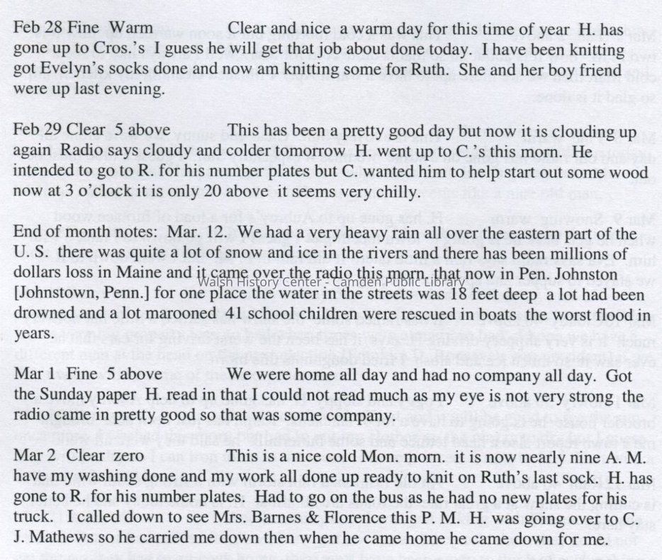 Diaries of Florence Adelle Payson Pearse (1936 & 1937)Entry/Object ID