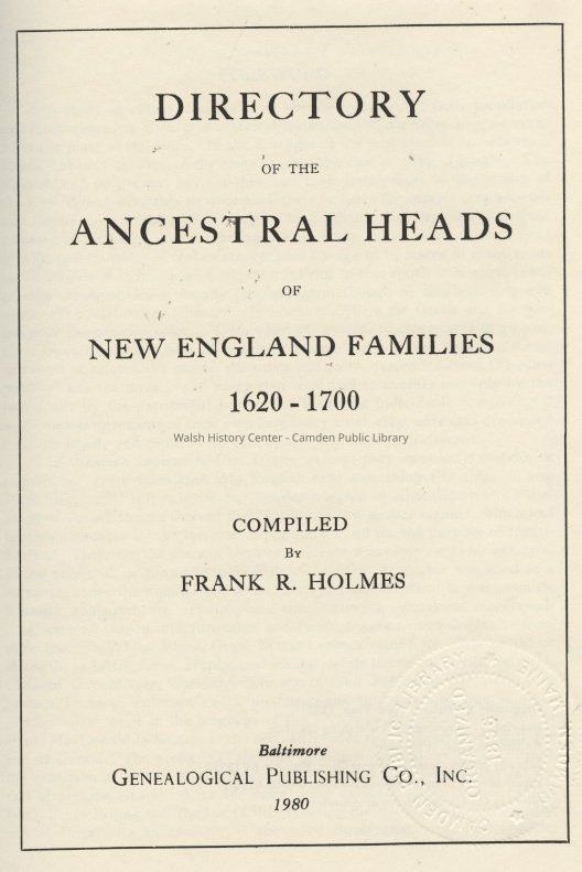 Directory of the Ancestral Heads of New England Families 1620-1700Entry/Object ID