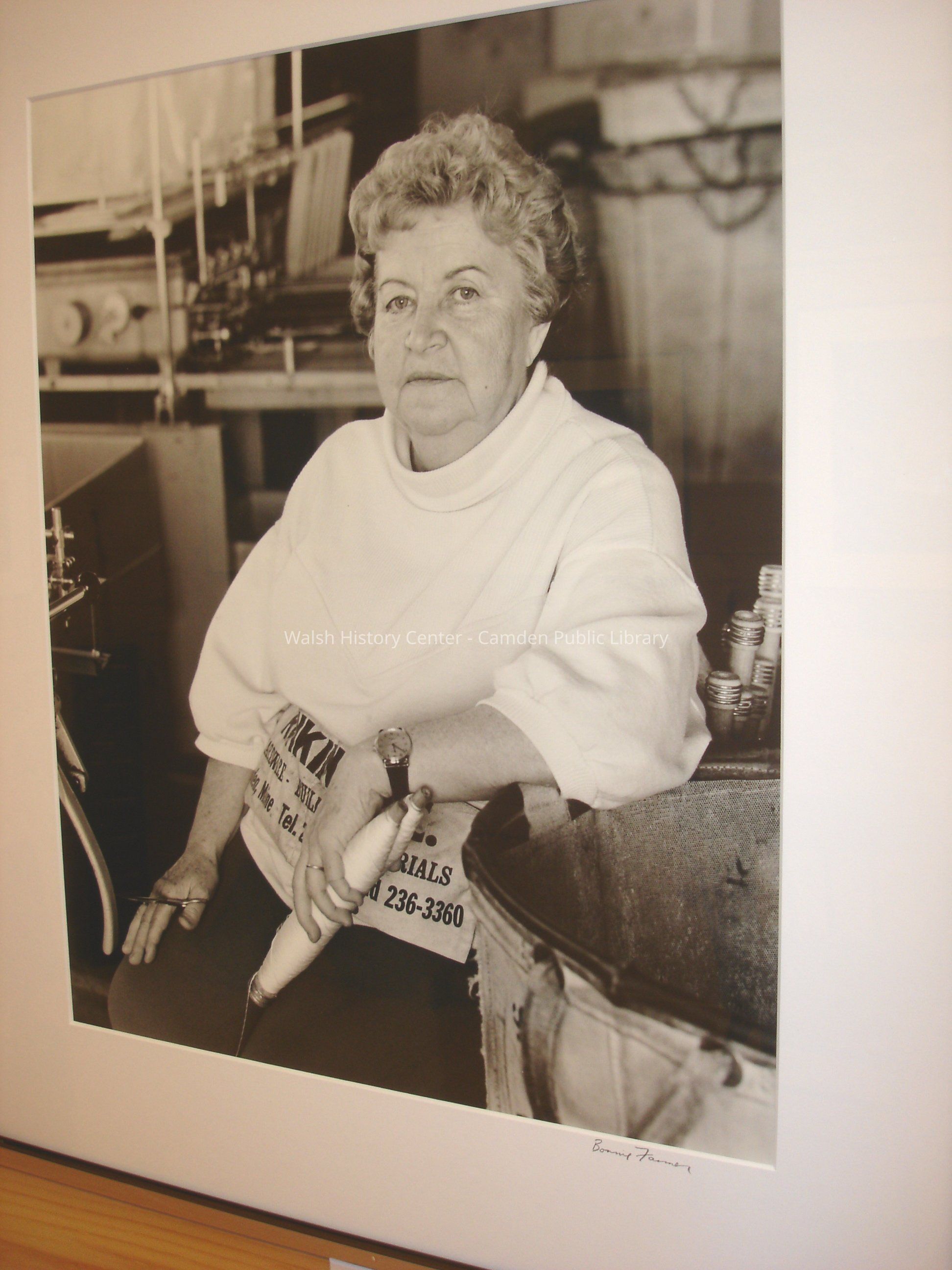 One of 19 documentary black & white photographs of the Knox Mill and its employees shortly before closing of the facility in 1987.Collection
