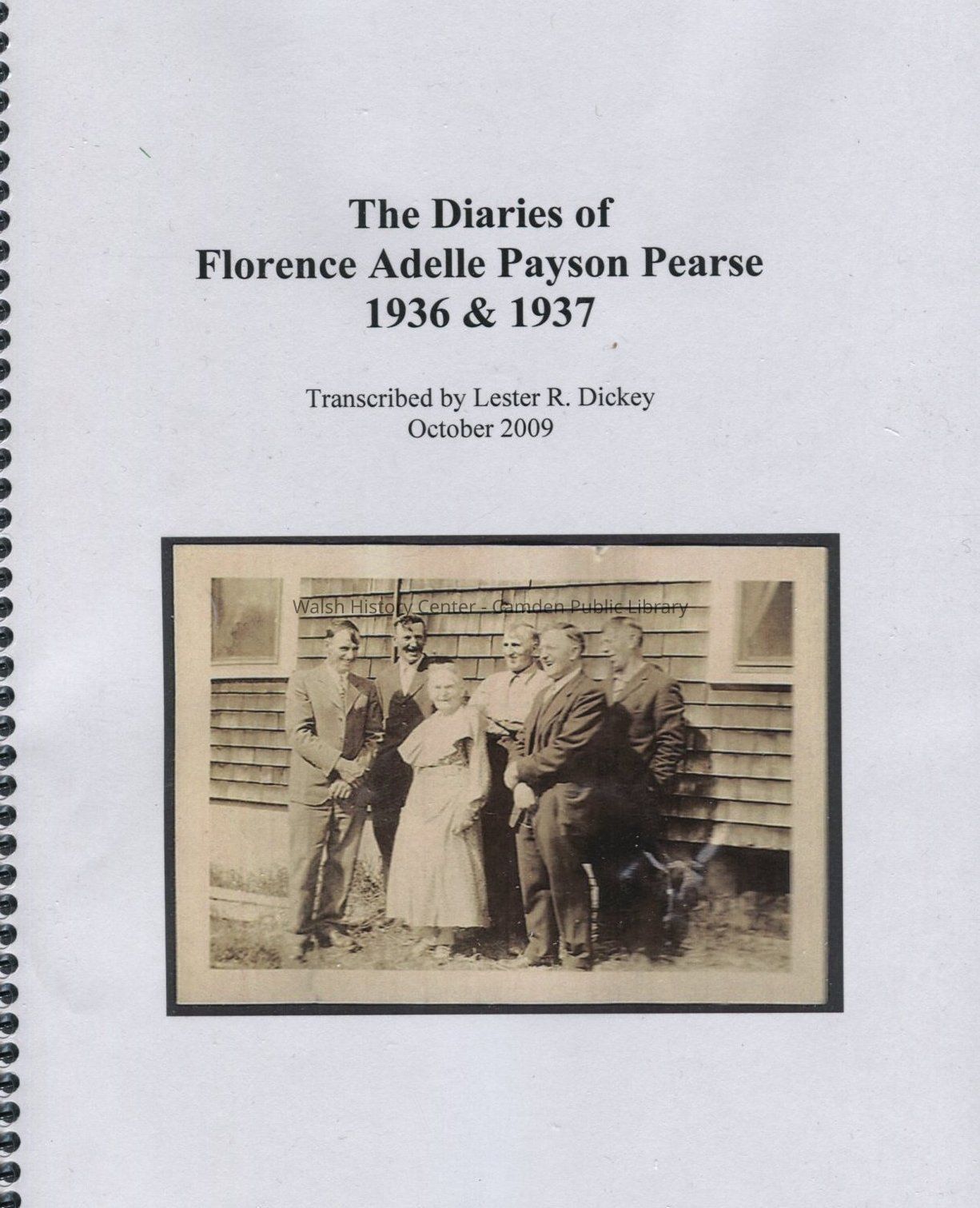 The diaries of Florence Adelle Payson Pearse, 1936-1937, transcribed by Lester R. Dickey, October 2009. Includes Payson and Pearse genealogy information.