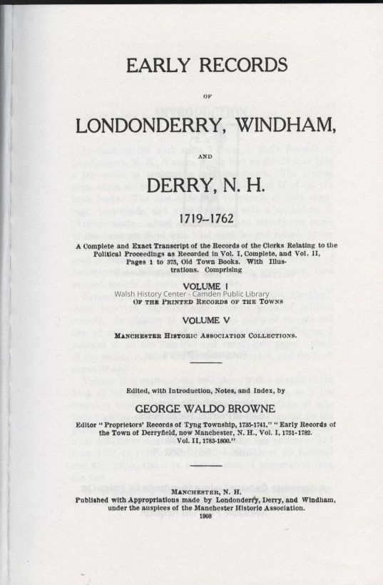 Early Records of Londonderry, Windham, and Derry, N.H. 1719-1762Entry/Object ID