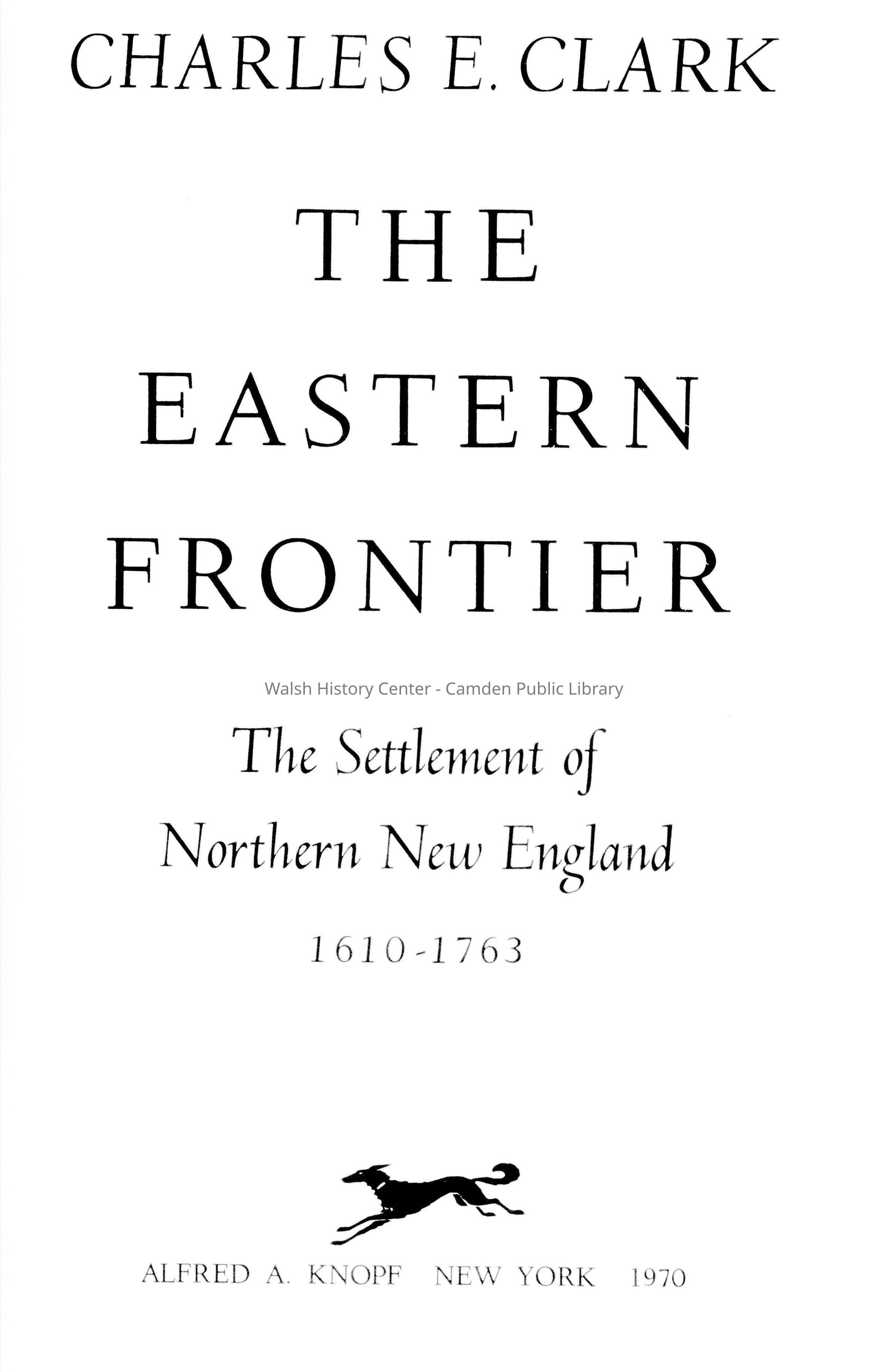 Eastern Frontier The Settlement of Northern New England 1610 - 1763Entry/Object ID