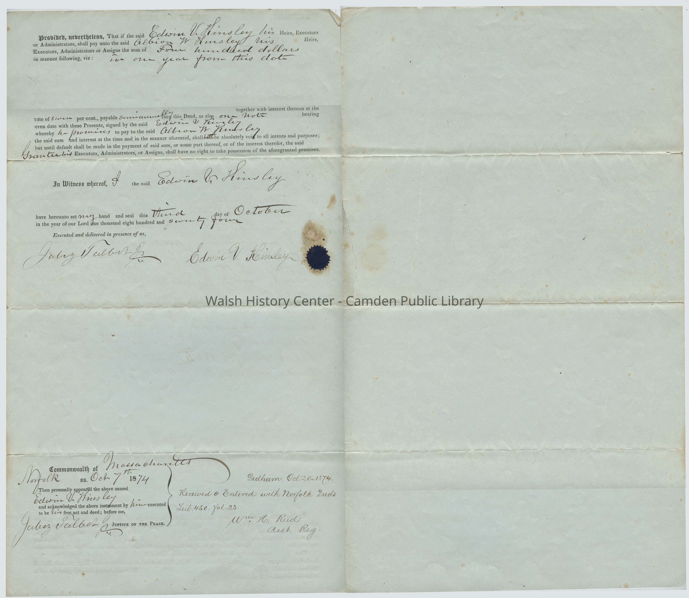 Edwin Kinsley to Albion KinsleyEntry/Object ID