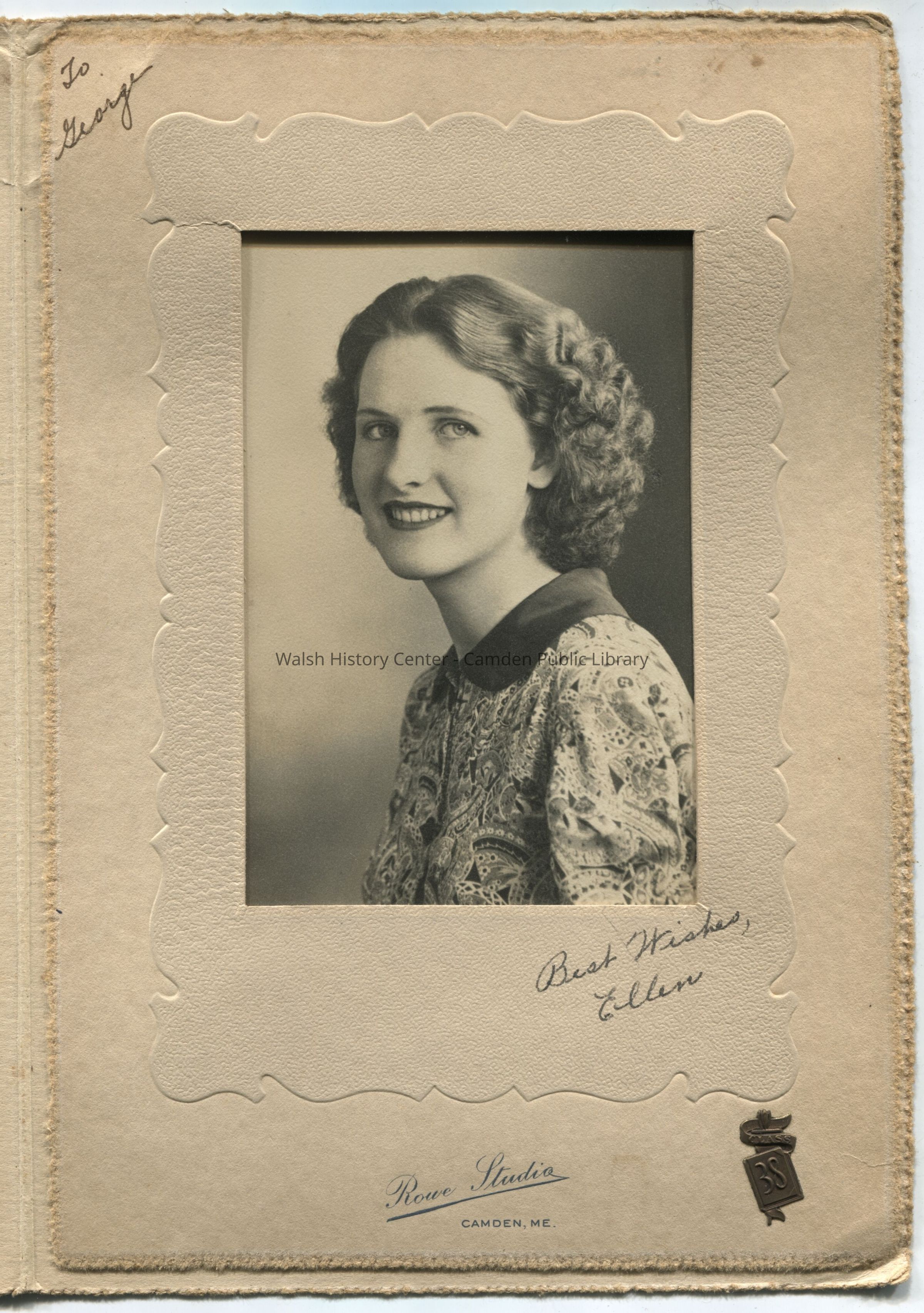 Photograph tentatively identified as Ellen Rankin of the Camden High School Class of 1939.Collection
