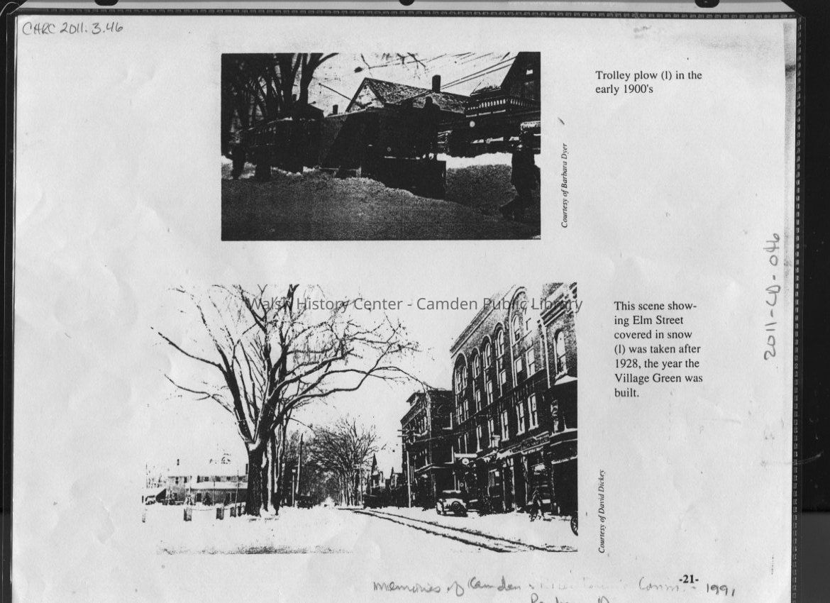 Photocopy of two photographs, one of Elm Street after 1928, and one of a trolley with plow on front.Collection