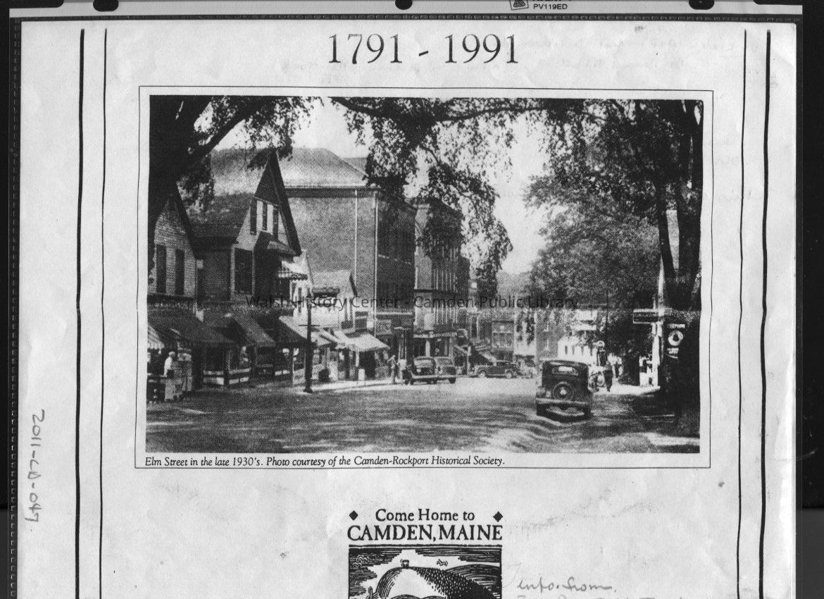 Photocopy of photograph of Elm Street in the late 1930s. Original image courtesy of the Camden-Rockport Historical Society.Collection