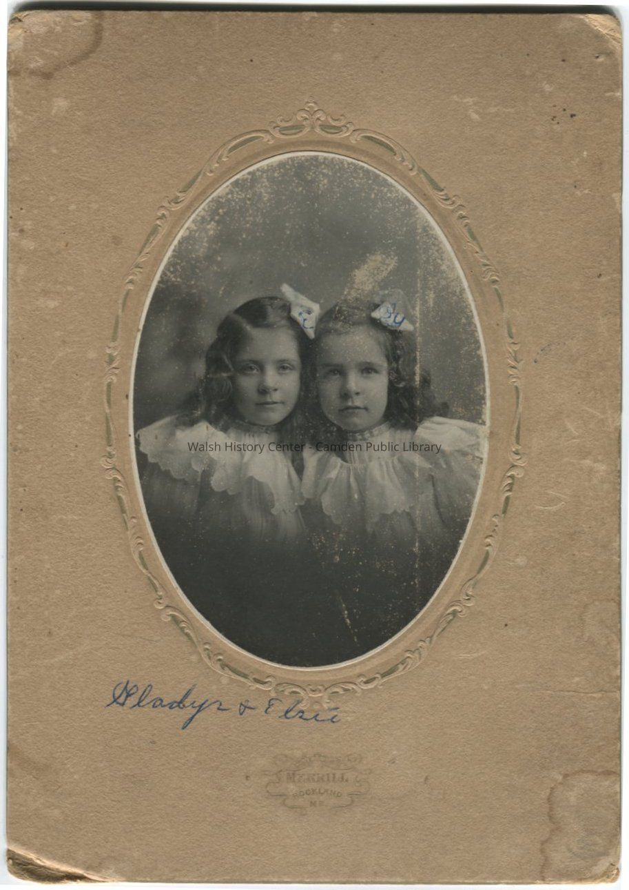 Photograph of Gladys and Elsie Maxcy of Rockville, ME. Gladys married Henry Keller. Their daughter Dot Keller married David Hamalainen and resides in Camden, Maine.Collection
