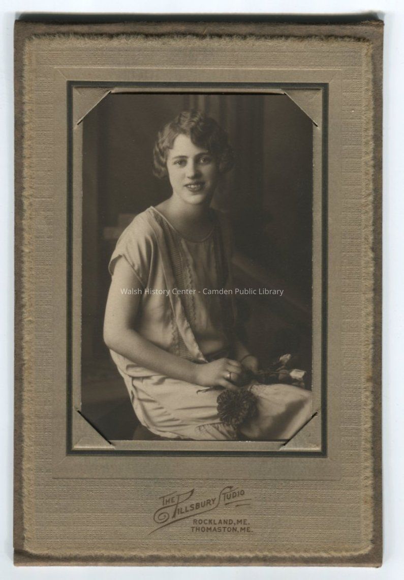 Photograph of Evelyn Philbrook, member of the Camden High School class of 1926. Photograph is sepia tinted and enclosed in a decorative cardboard enclosure.Collection