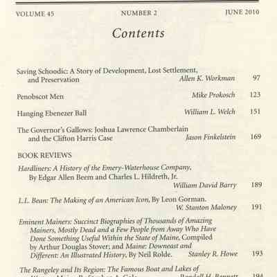 Maine History, published quarterly by the Maine Historical Society, Volume 45, June 2010.