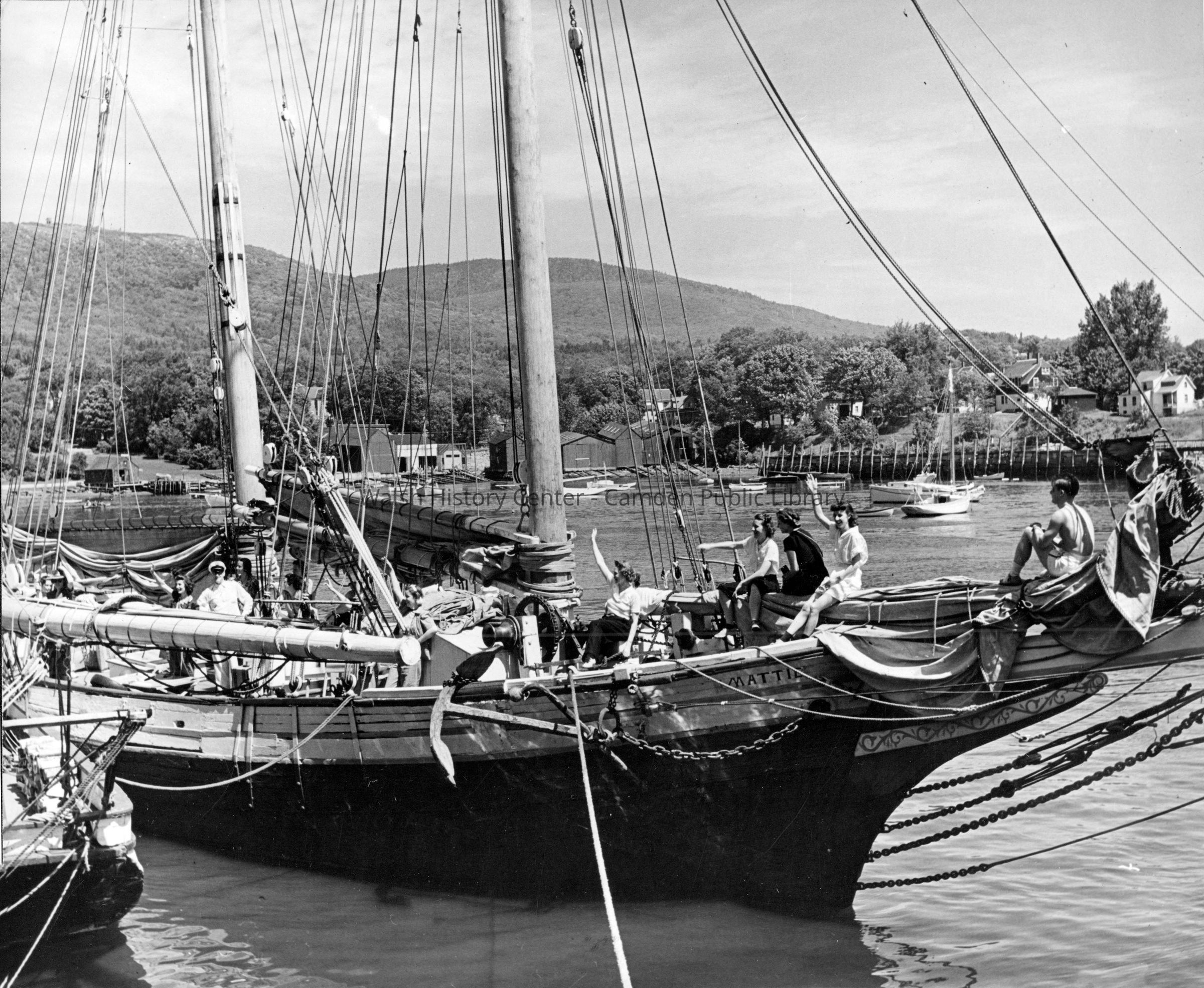 Two b/w photos of schooners in Camden harbor, one of which is the "Mattie."Collection